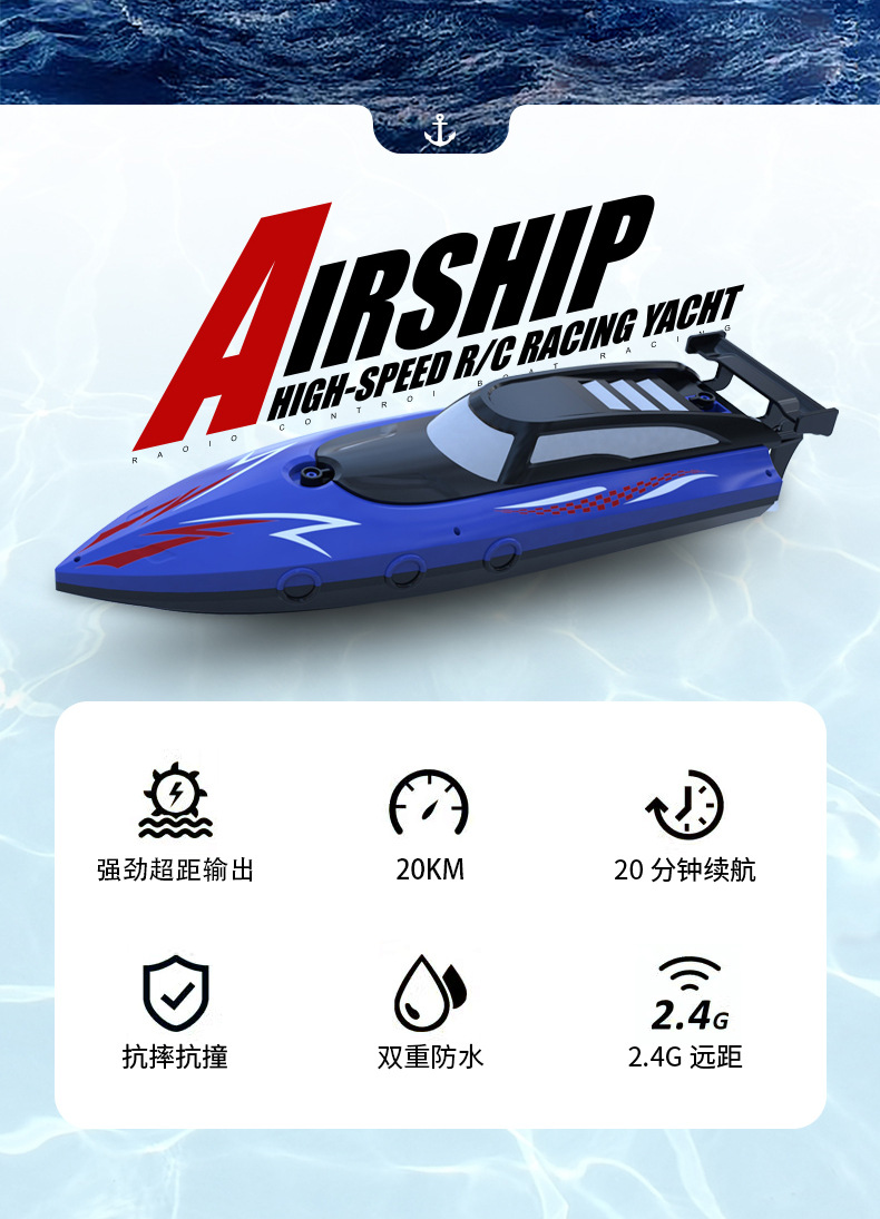 - 2.4G high-speed remote control speedboat [blue]]