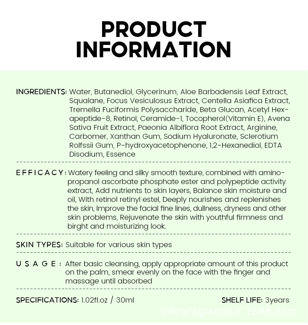 Cross-border VIBRANT GLAMOUR retinol facial essence 30ml Fade dry lines fine