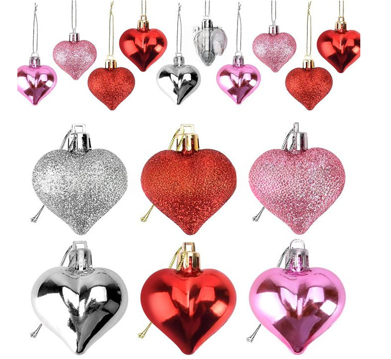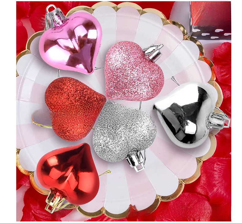 Cross border Valentine s Day Love Pendant Electroplated Glitter Peach Heart Combination Set Pendant Wedding Wedding Decoration Props