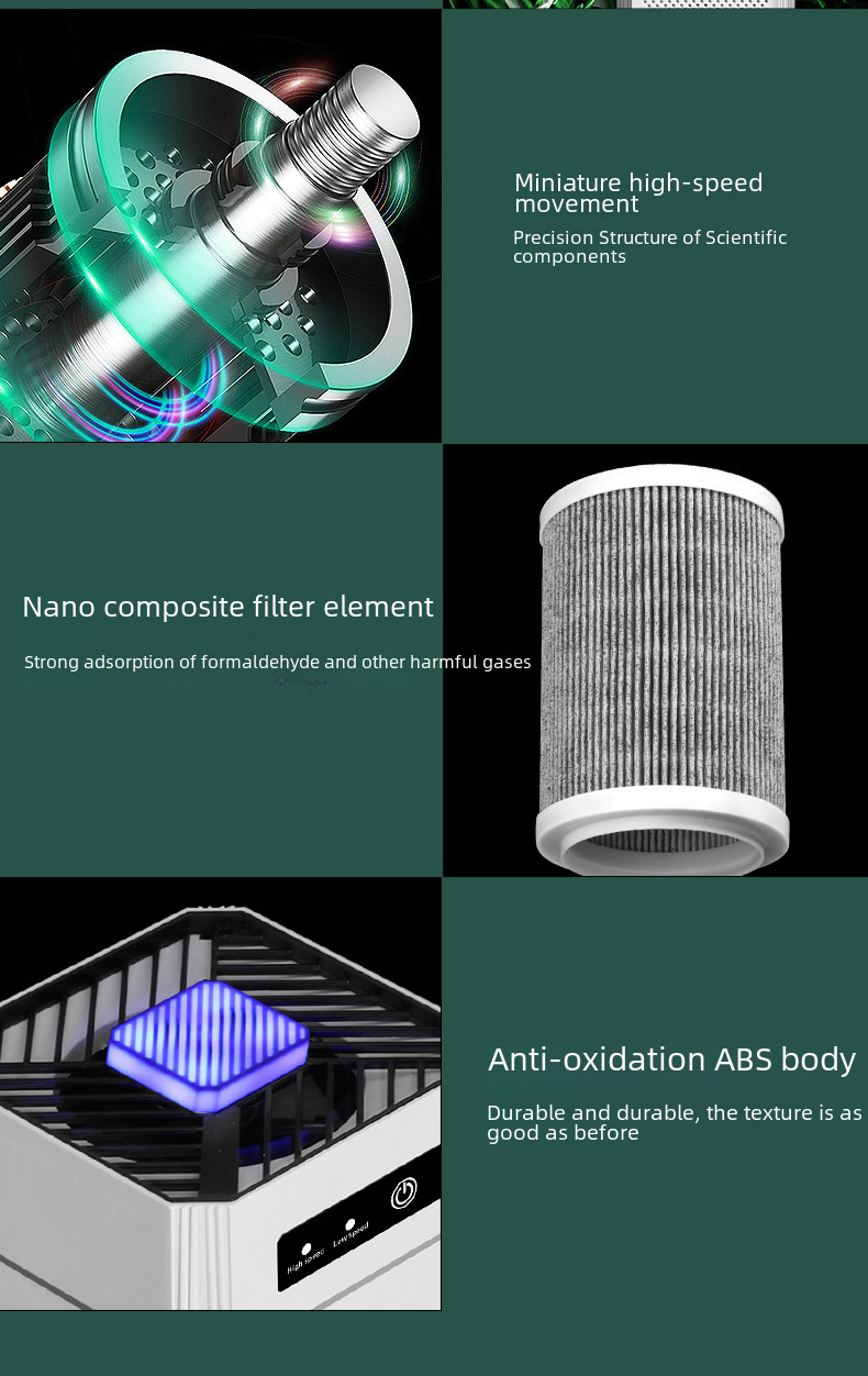 Air Purifying Capability:This compact desktop air purifier is designed to effectively remove harmful substances from the air, including formaldehyde and second-hand smoke, ensuring a clean and healthy environment in your home or office.
