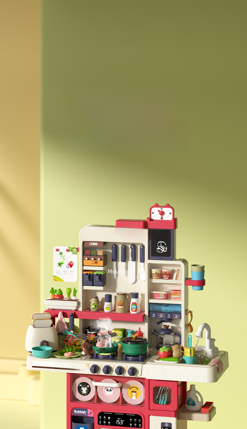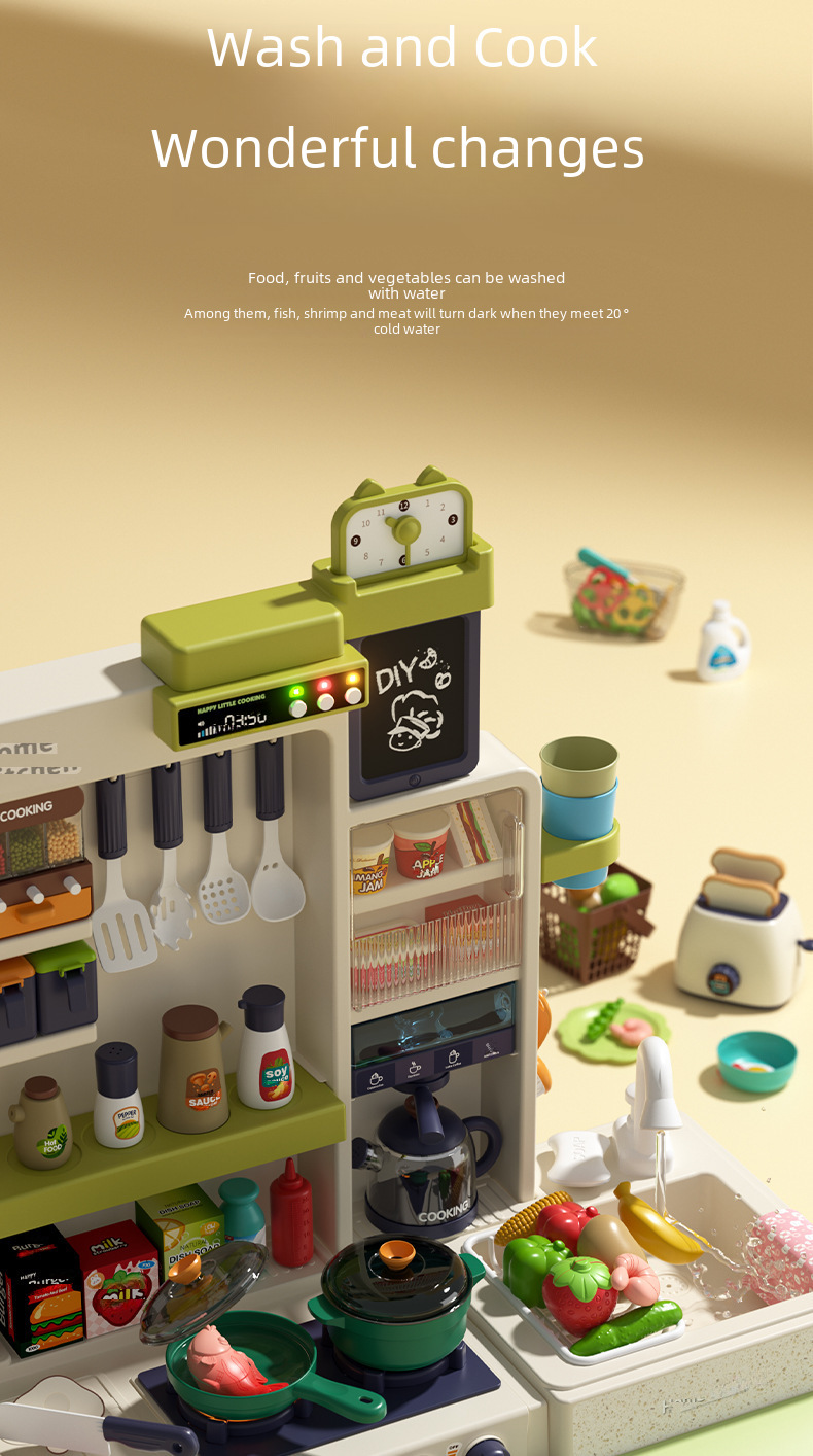 Cross border children s simulation spray kitchen tableware table play house bread water dispenser cooking water kitchen toy set