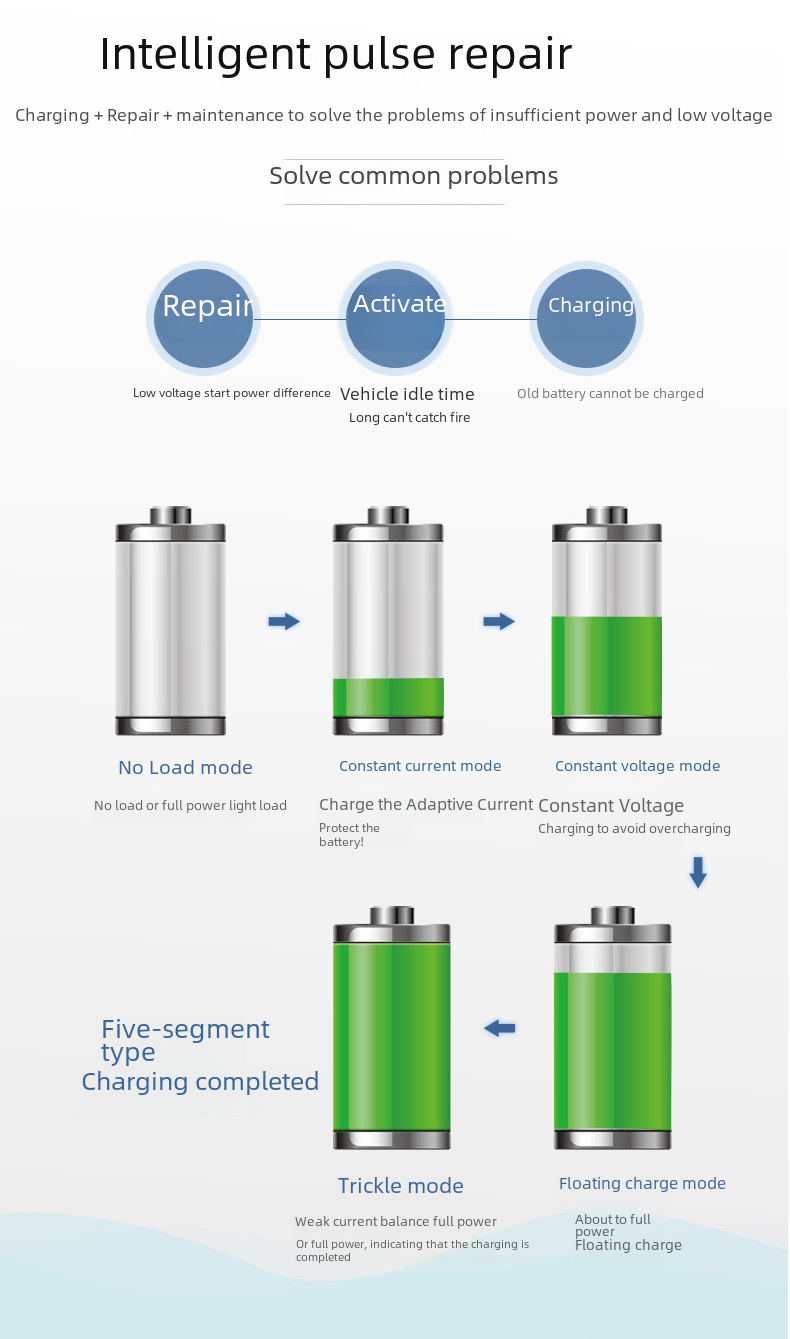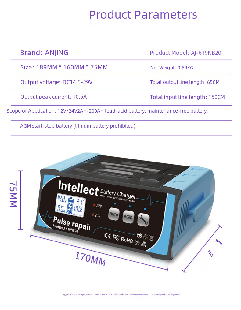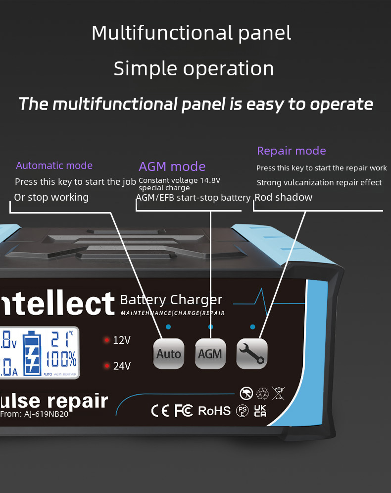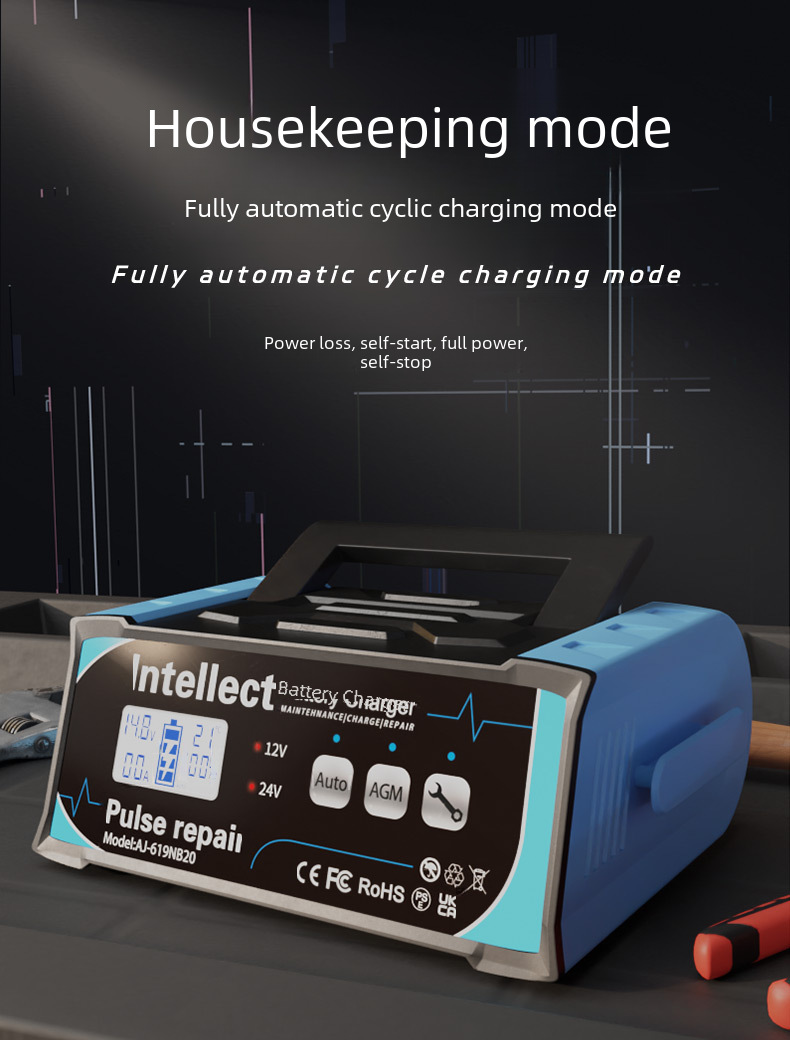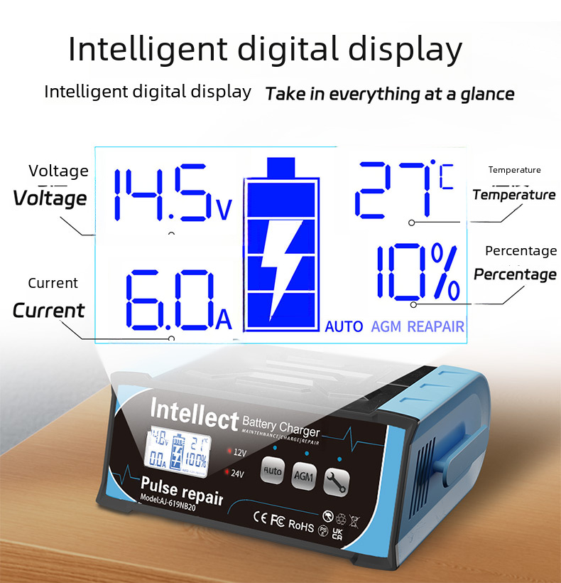 Cross border fiberglass Amazon battery intelligent pulse repair charger 12V car battery charger