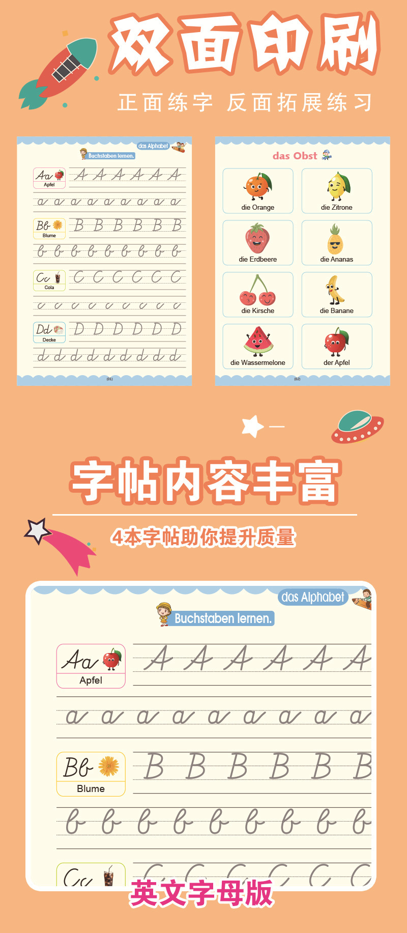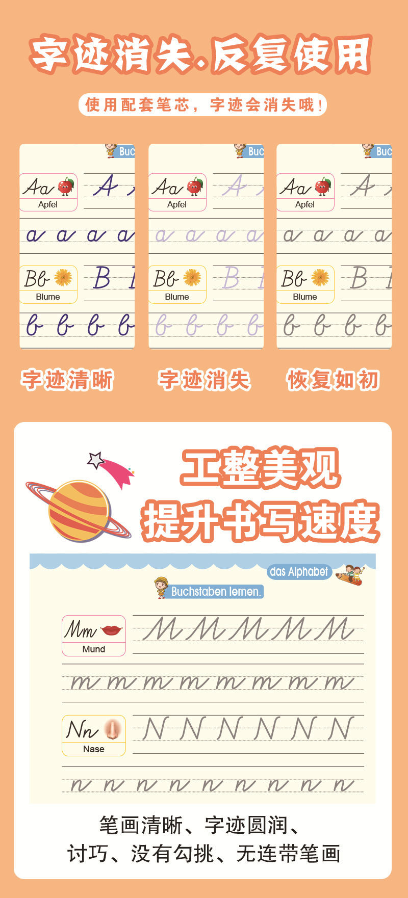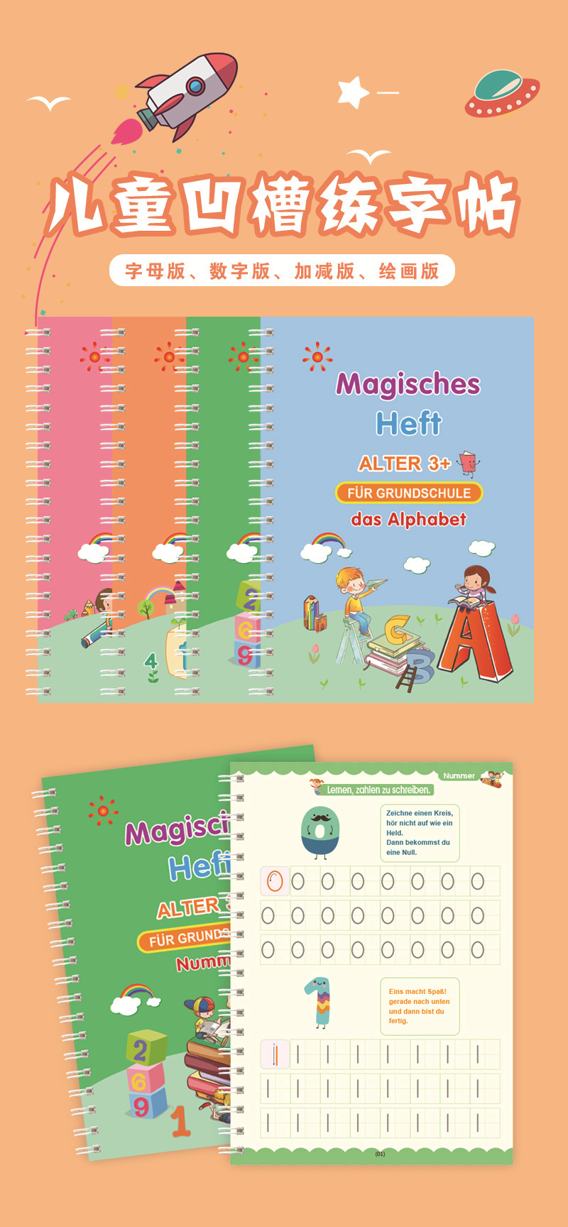 Cross border foreign trade German French German German Arabic children s groove copybook hard pen word practice sticker magic