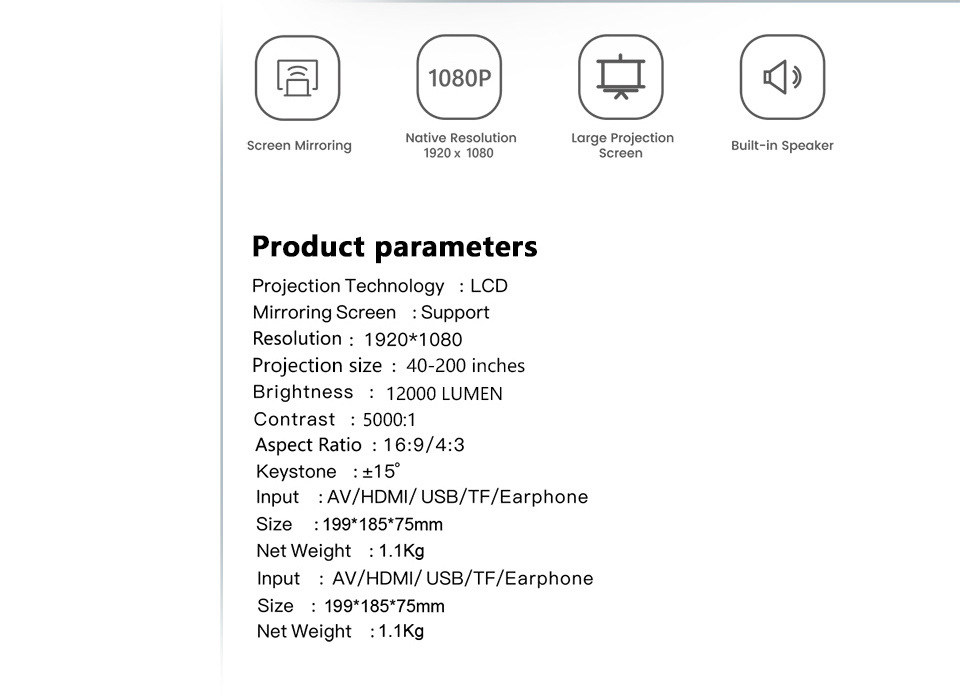 Cross-border hot Wireless wifi ultra HD projector dormitory bedroom Home Office HD projector 1080p