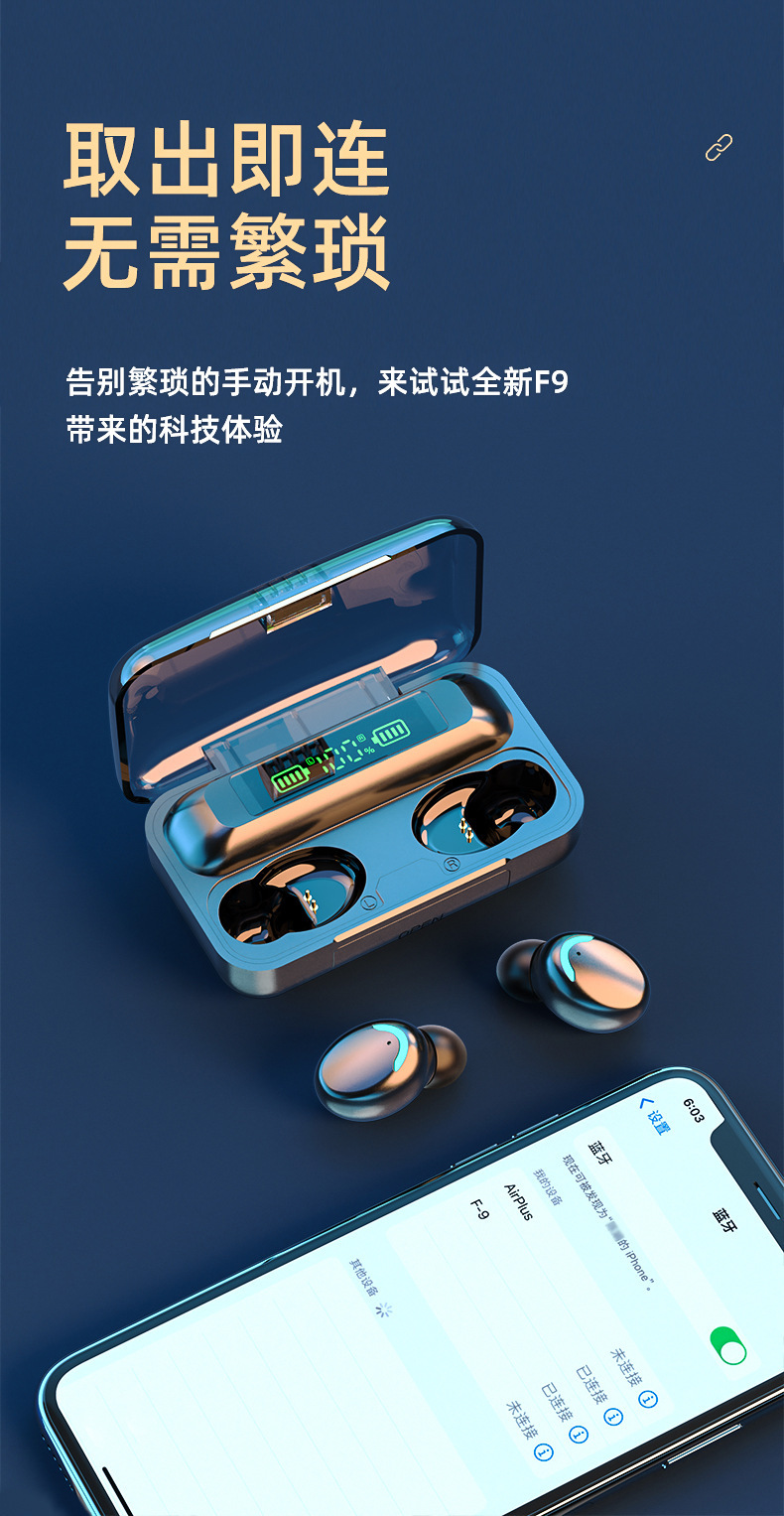 Cross border hot private film F9 f9 5c mini binaural Bluetooth headset wireless stereo TWS factory wholesale