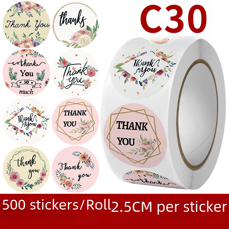 Cross border multi pattern roll sticker Thank you Flower cute sealing sticker wedding decoration label