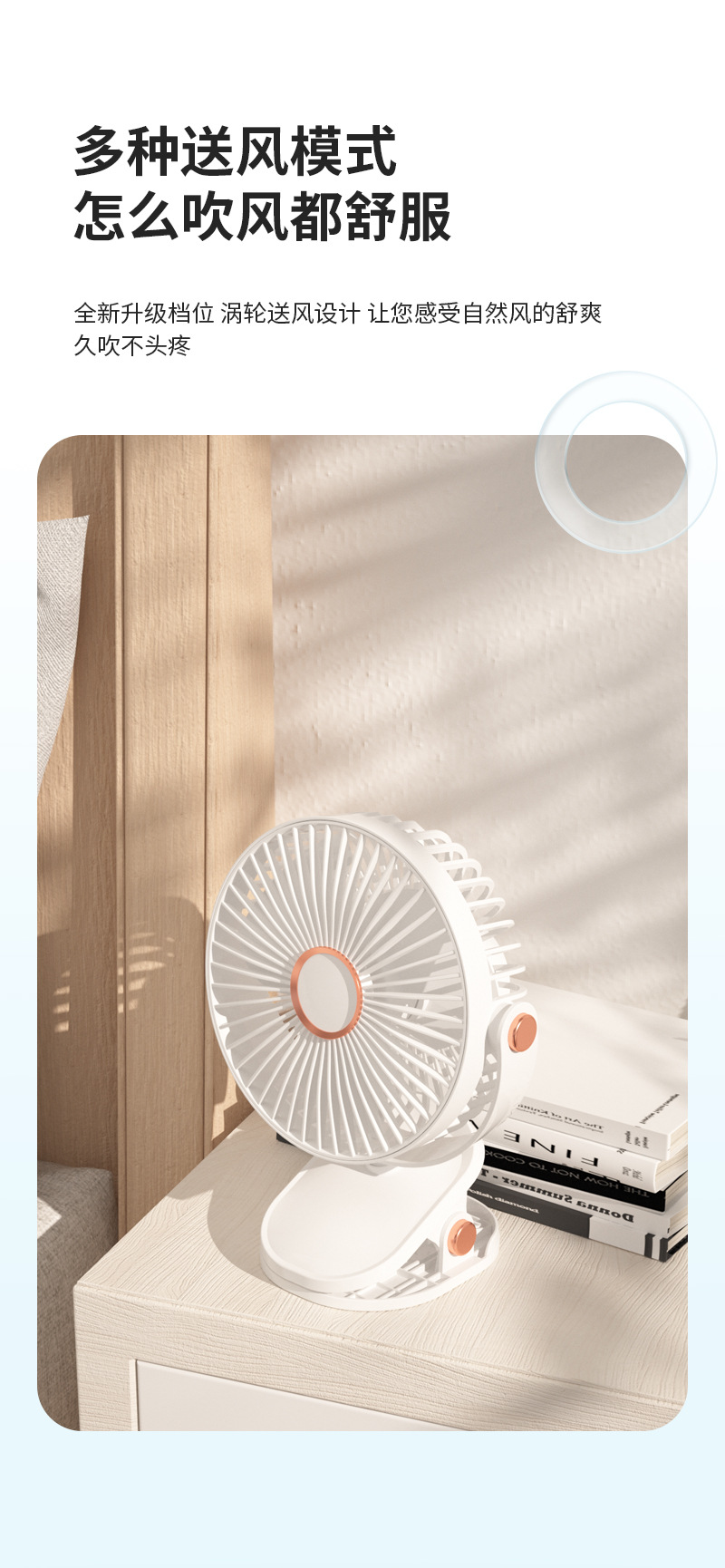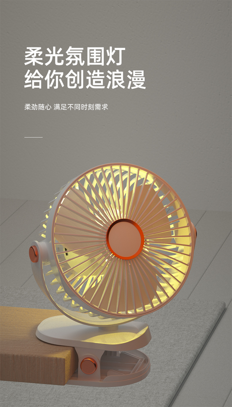 Cross border multifunctional night light clip fan usb charging portable student dormitory mute mini fan