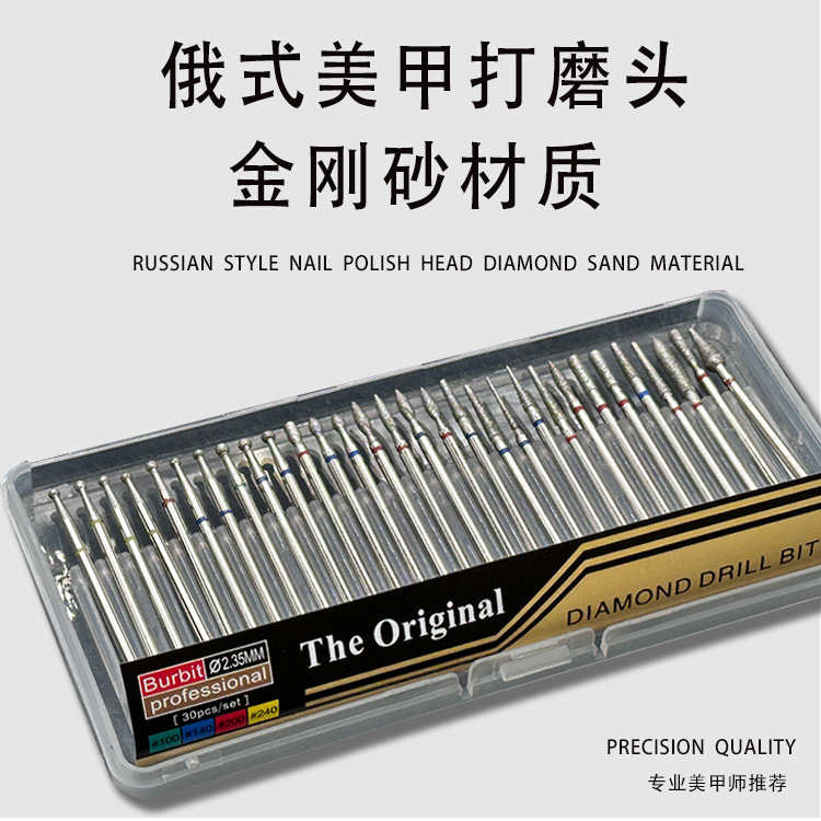 Cross border nail electric grinding machine accessories Russian diamond nail grinding head 30 pieces suit dead skin removal