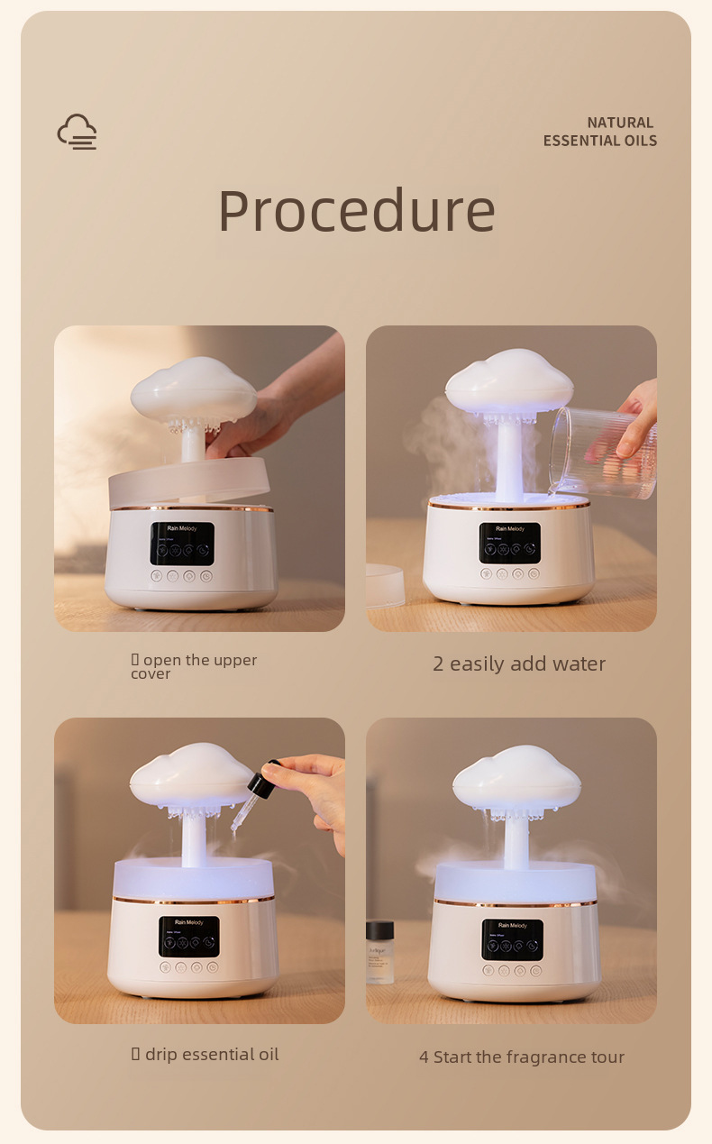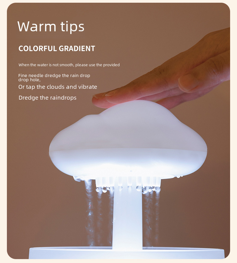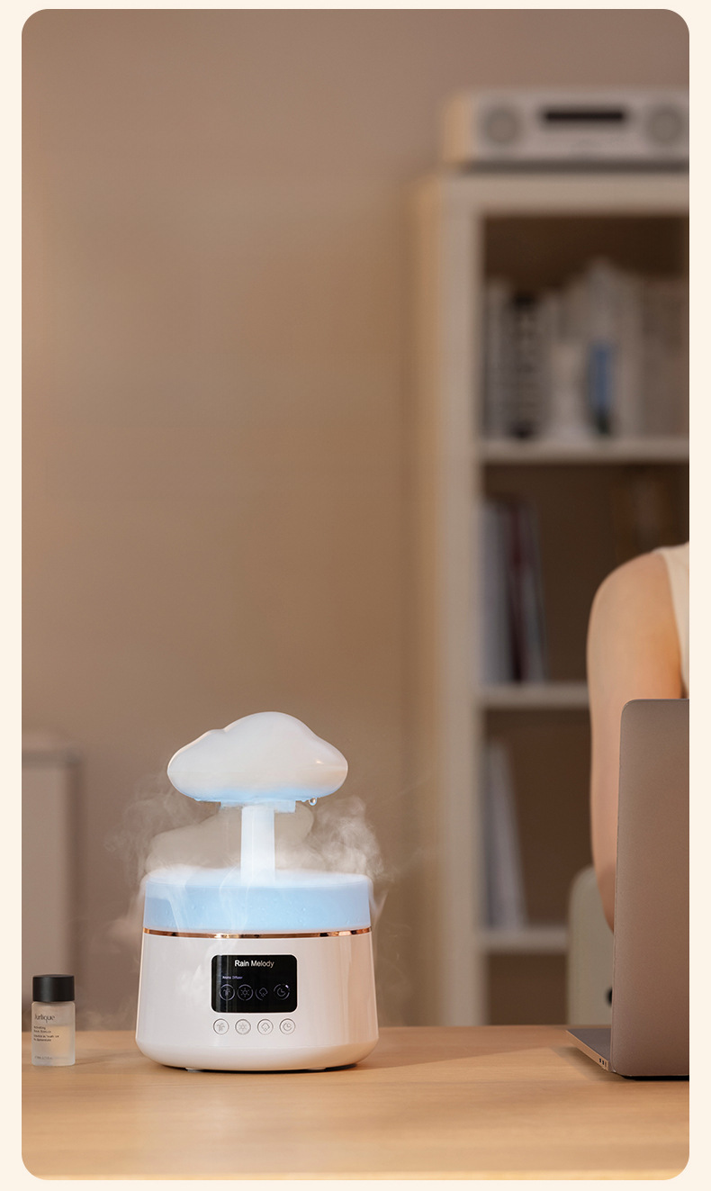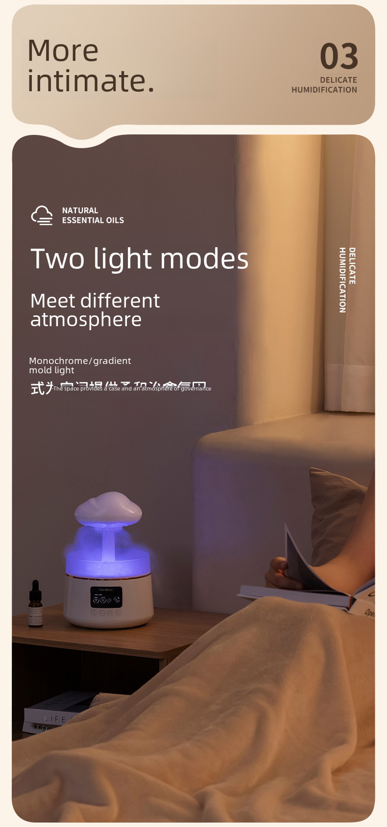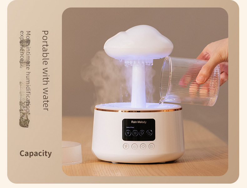 Cross border new Raindrop cloud aromatherapy machine White dry sound decompression household fragrance expansion colorful night light humidifier