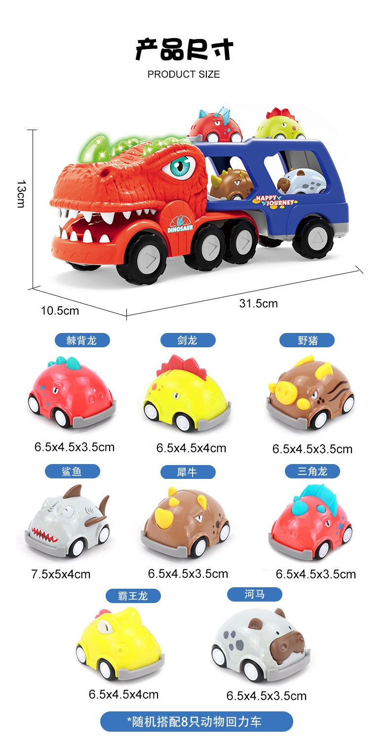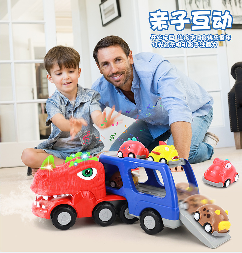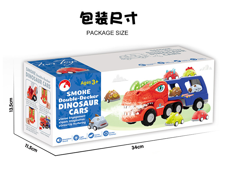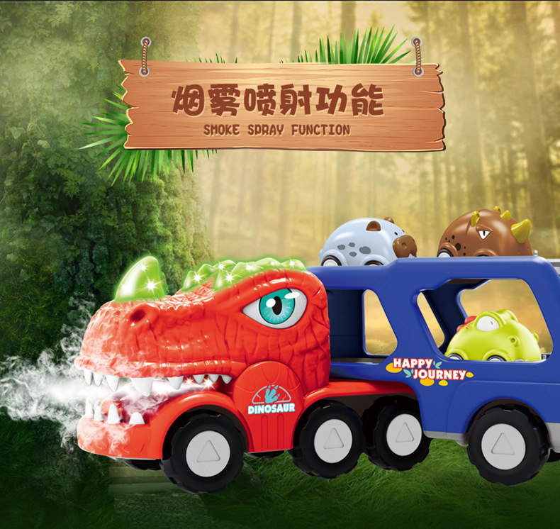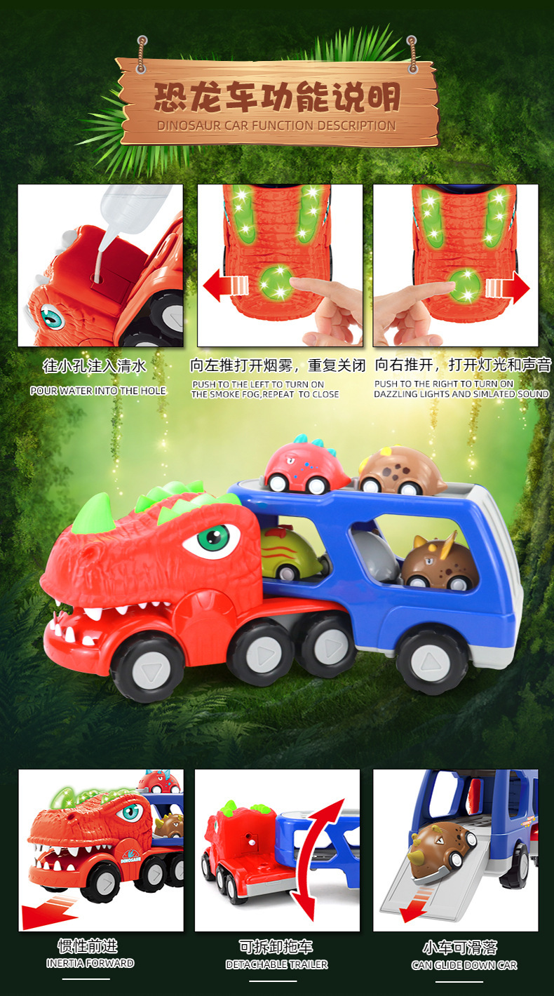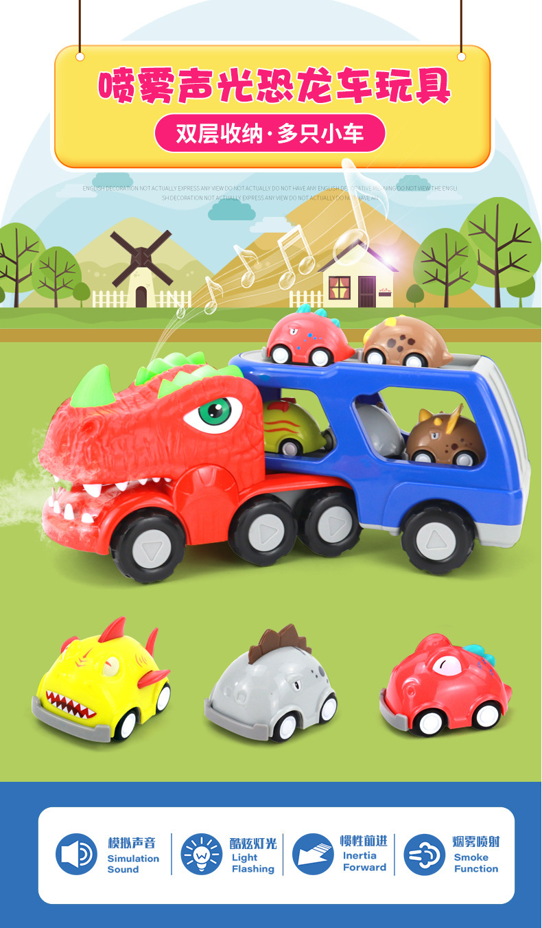 Cross-border new electric spray dinosaur car tyrannosaurus double-layer transport vehicle pull back dinosaur toy car suit wholesale
