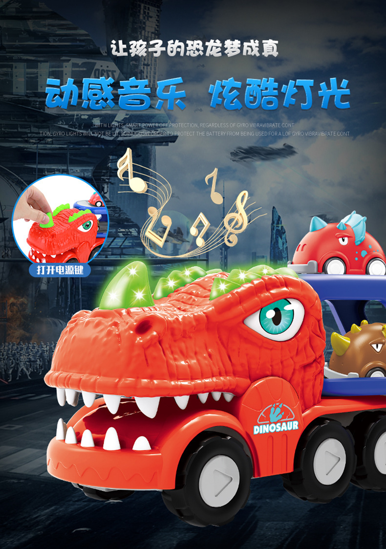 - G0113 Large Triceratops Acousto-optic Transporter [English Color Box with 4 Huili Dinosaur Cars]]