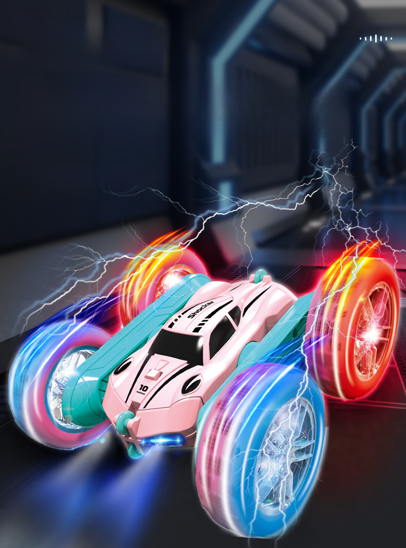Cross border new four wheel drive double sided stunt car light tire swing arm rolling car boys and girls toy pink remote control car