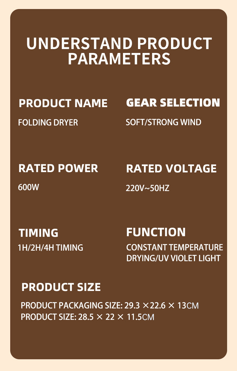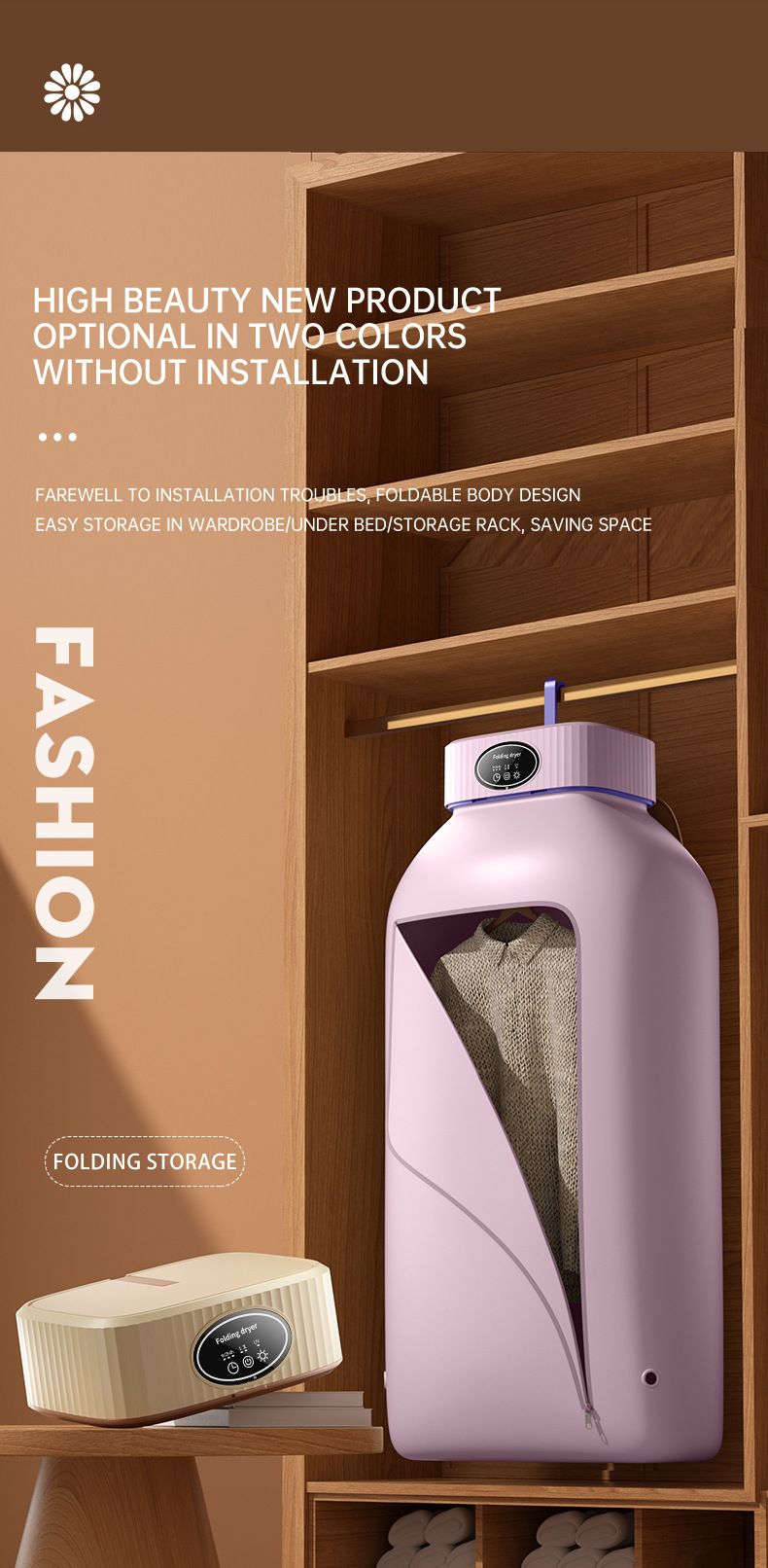 Cross border new portable folding quick drying dryer intelligent ultraviolet disinfection household dormitory travel dryer