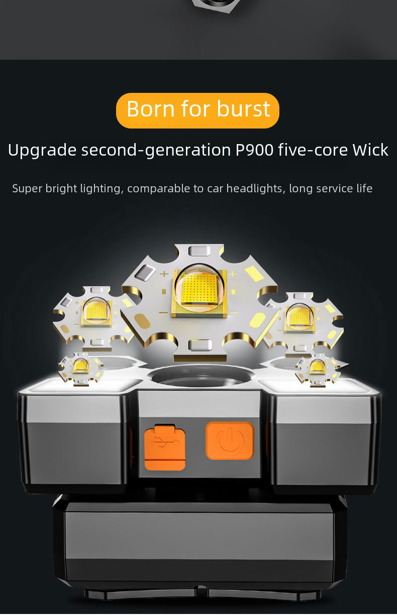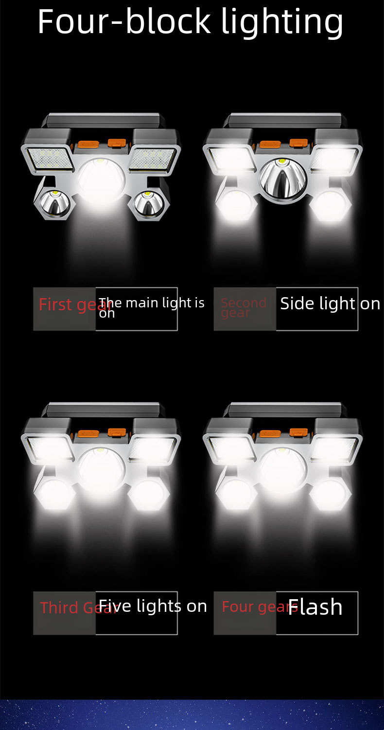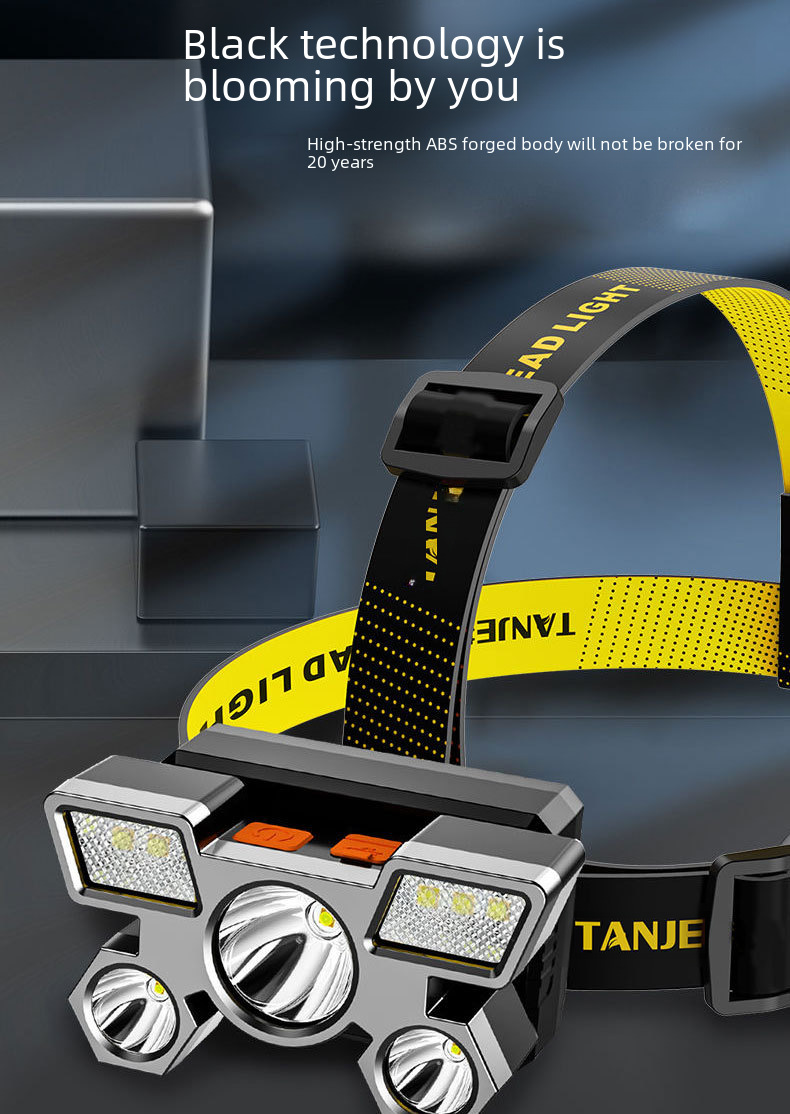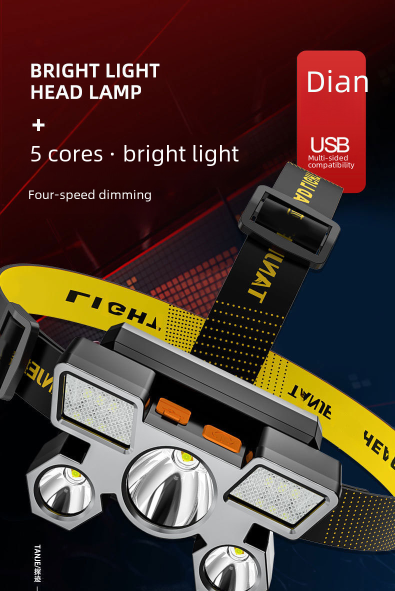 Cross border new strong light headlight led five head aircraft lamp usb rechargeable head mounted small flashlight outdoor miner s lamp headlight