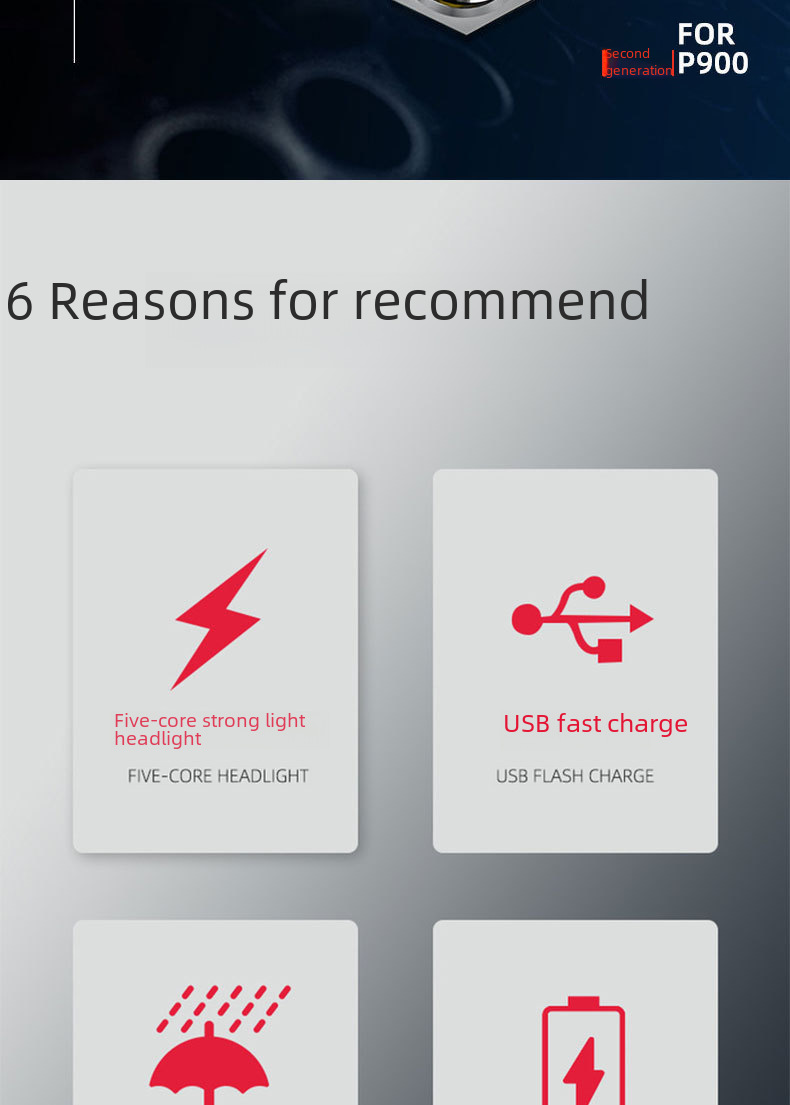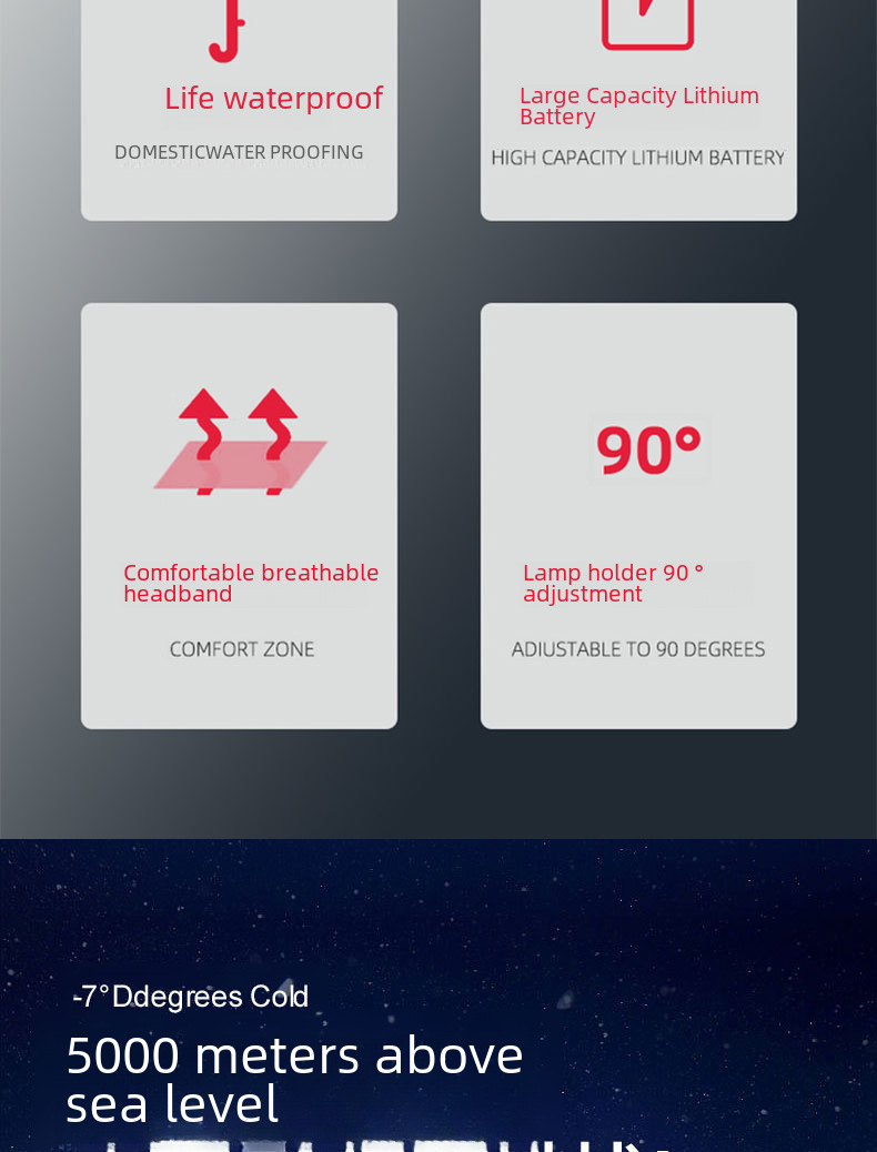 - Headlight + headband + USB cable + packing box