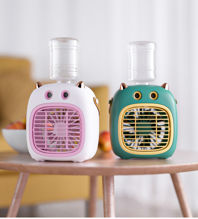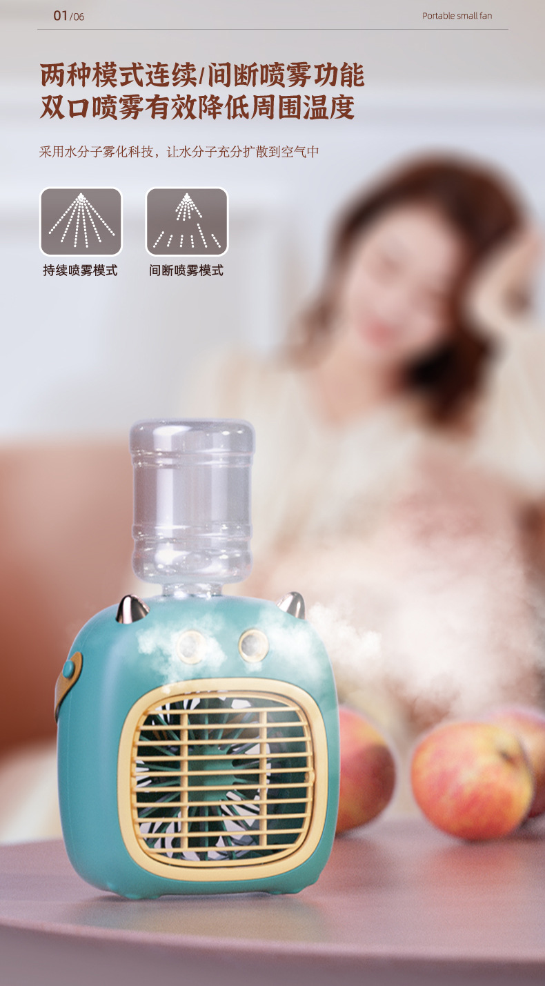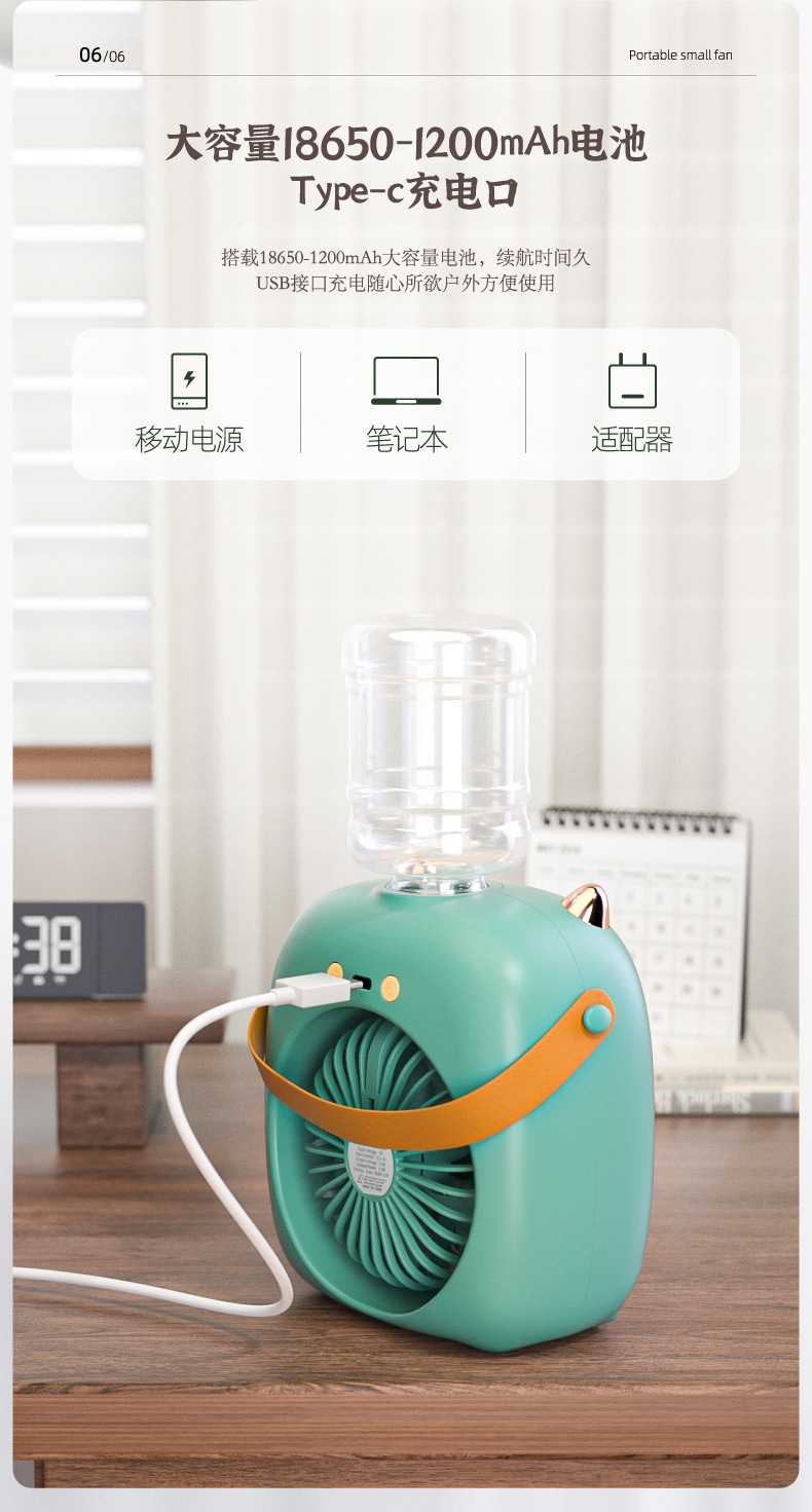 Cross border new water replenishment desktop cold fan cartoon usb charging office desktop mini double spray small fan