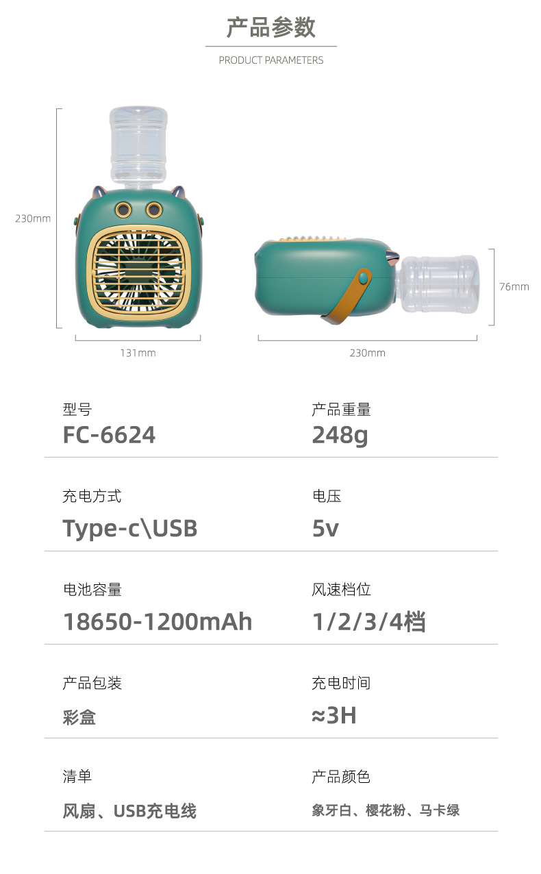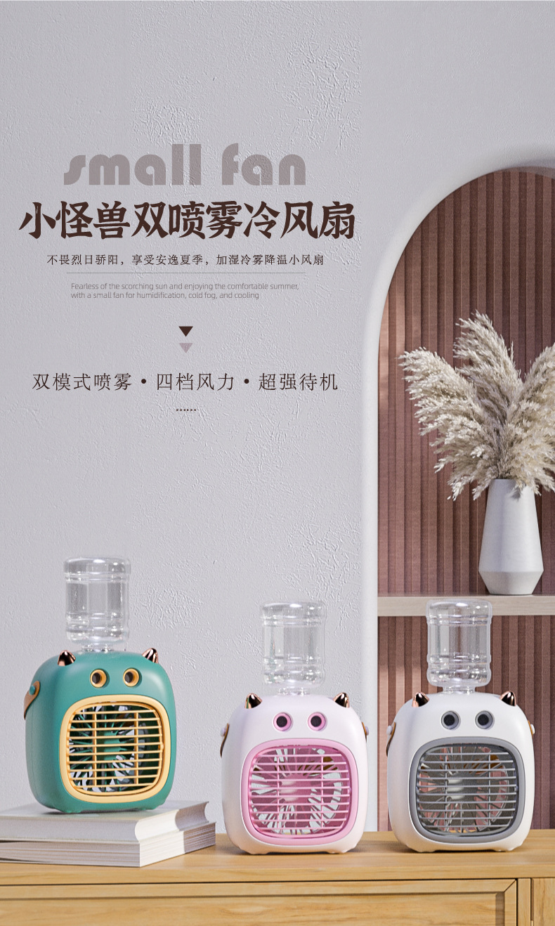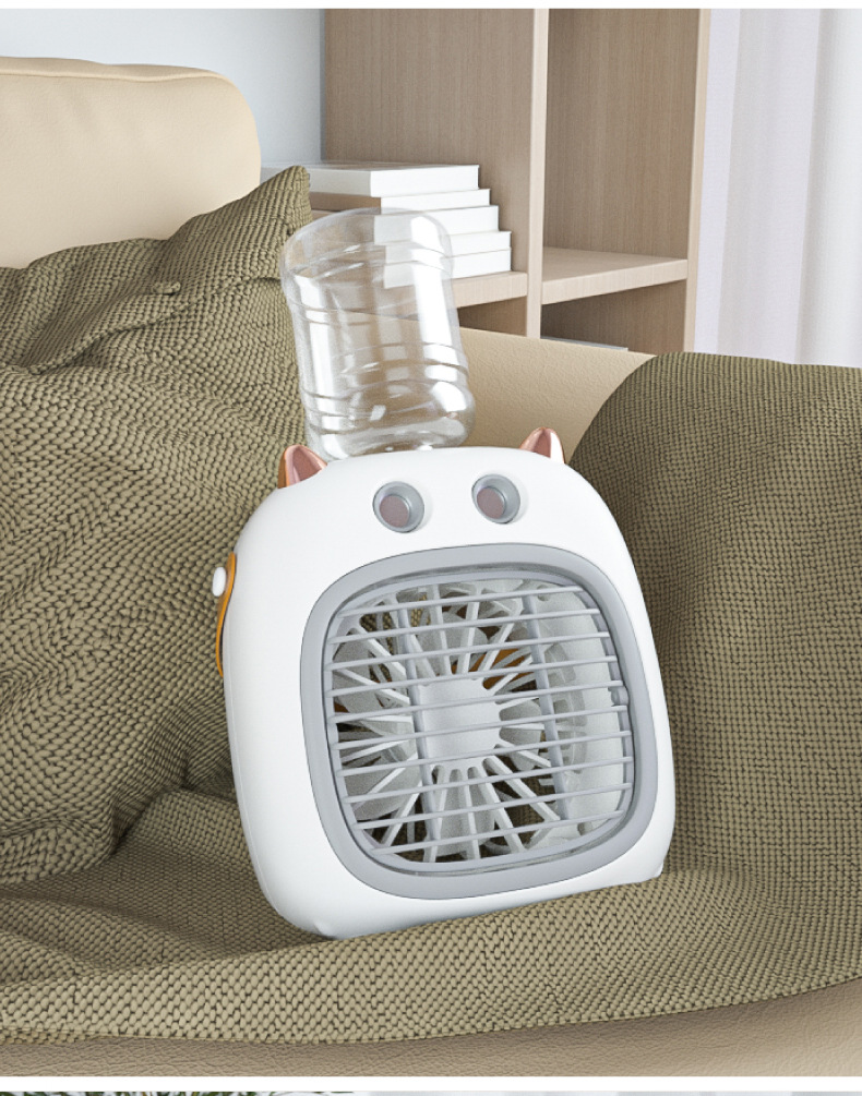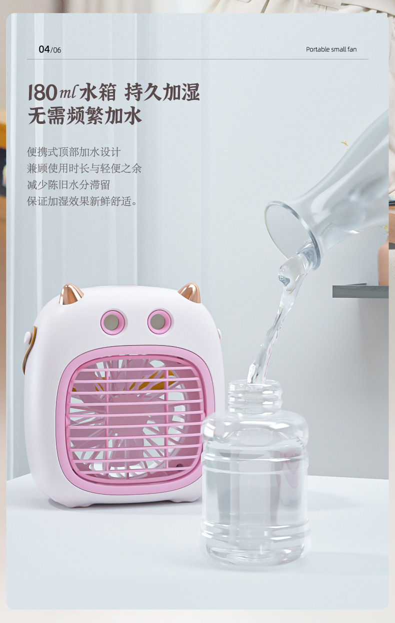 Cross border new water replenishment desktop cold fan cartoon usb charging office desktop mini double spray small fan