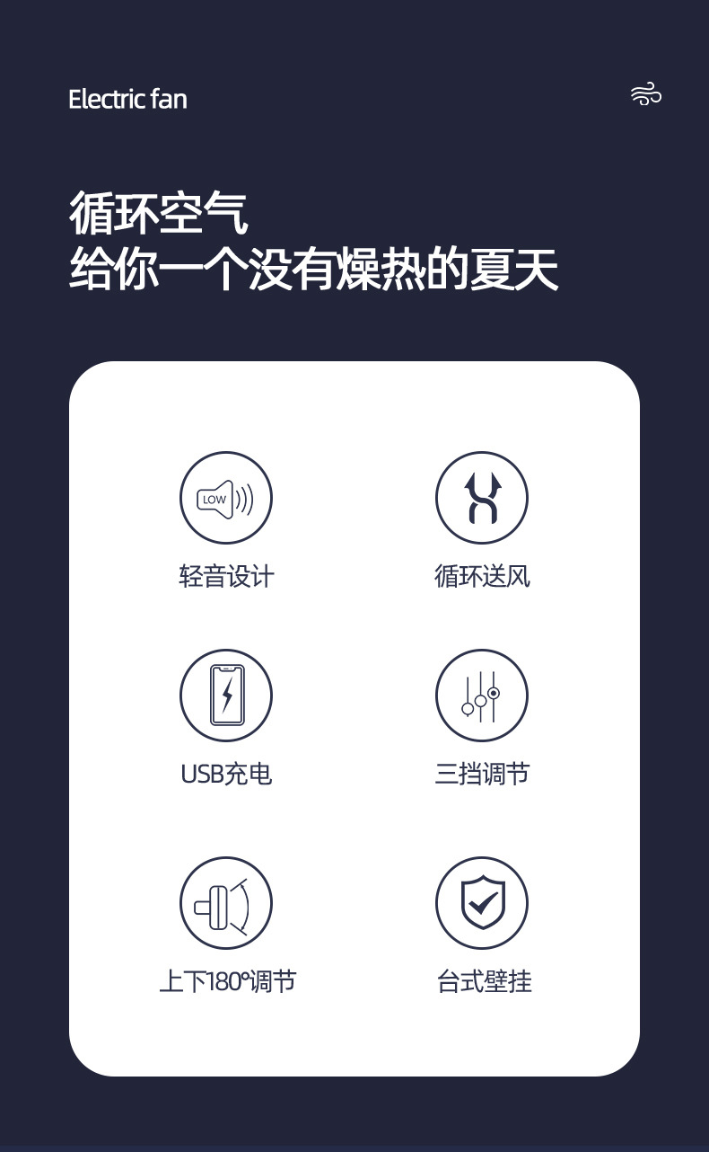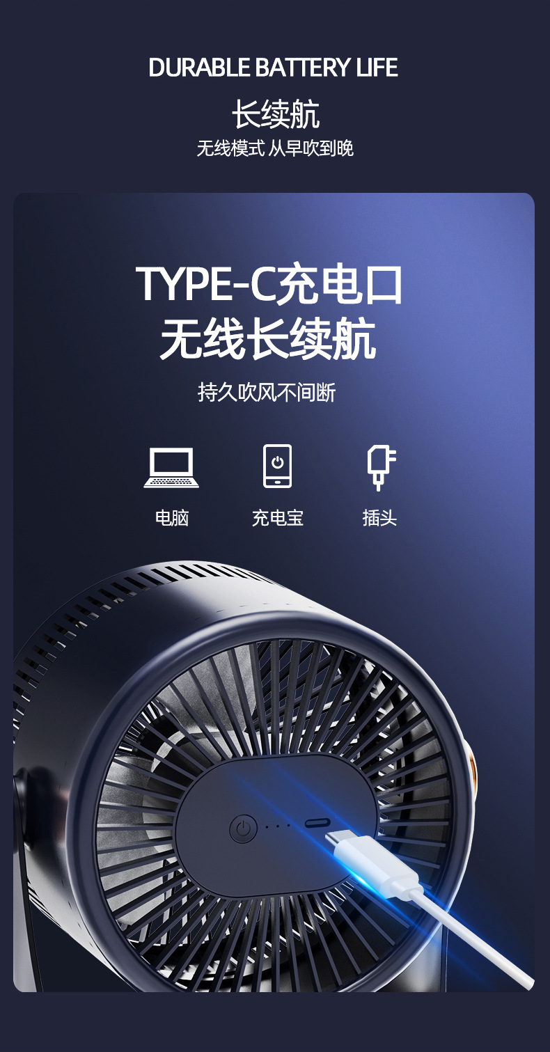 Cross-border outdoor camping desktop fan dormitory charger dual-purpose desktop circulating fan wall hanging air conditioning fan