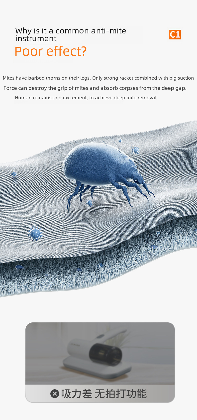 Cross border real racket wireless charging anti mite instrument sterilization machine large suction hand held bed household vacuum cleaner can be sent on behalf