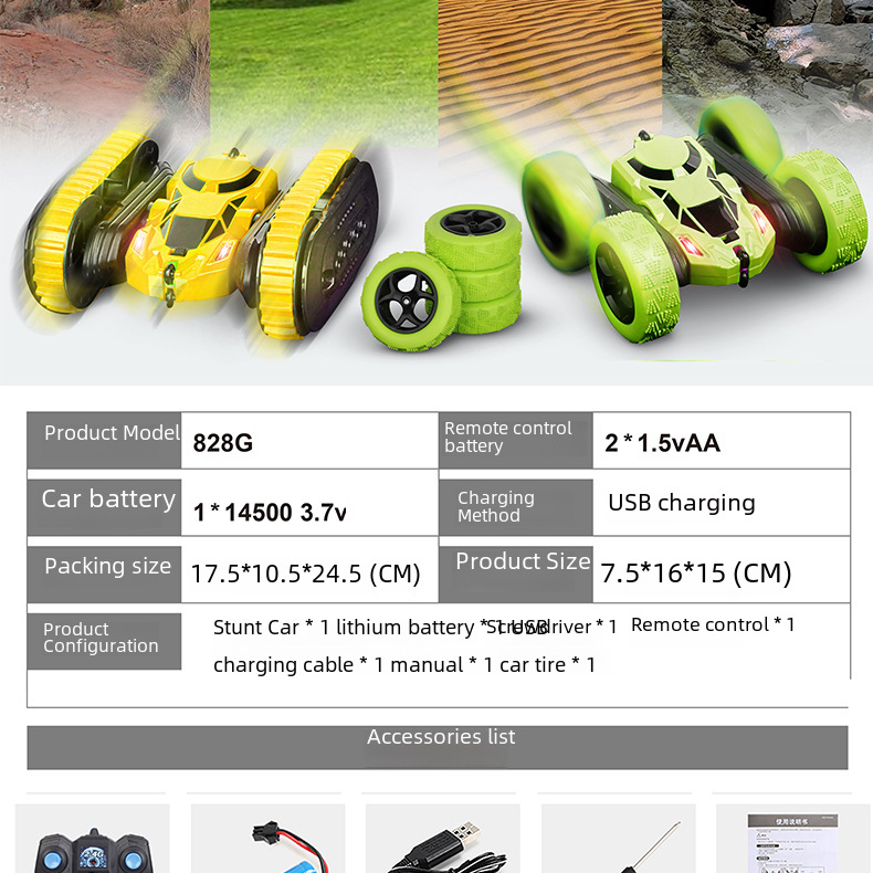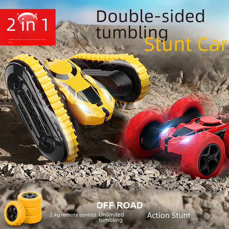 Cross border remote control car 2 in 1 double sided tank stunt car crawler car remote control stunt car twist roll climbing car