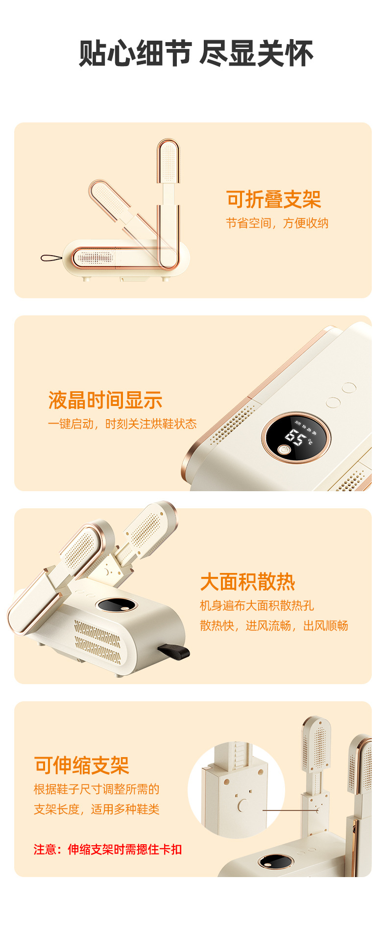 - Shoe dryer HX-1 smart timing + folding + Blue Light + telescopic + deodorant creamy-white
