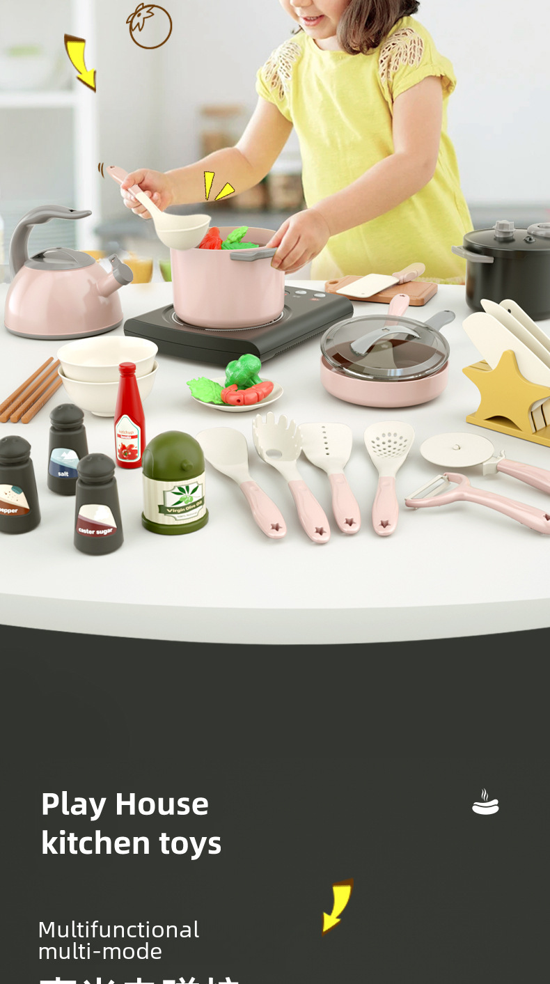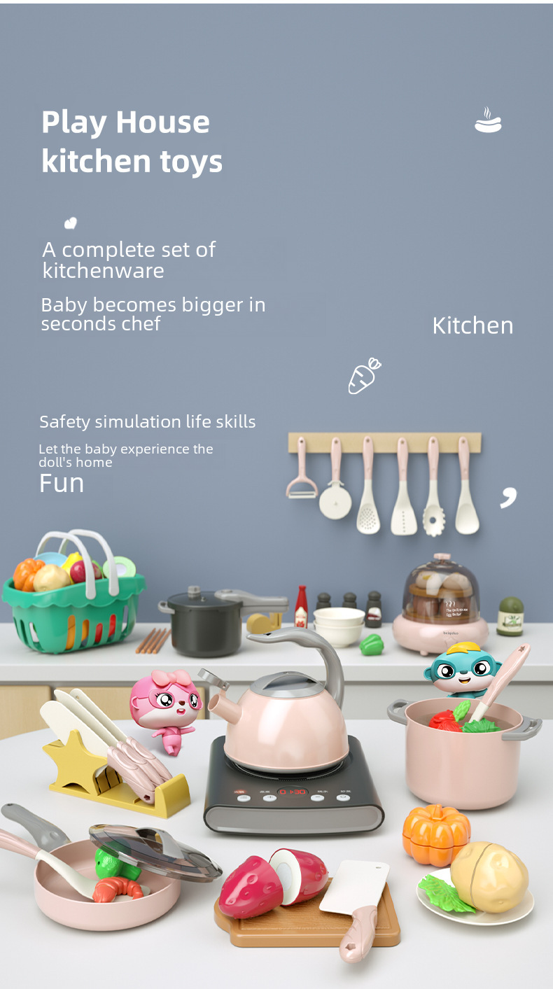 Cross border simulation kitchen baby cooking sound and light large electric rice cooker children play house toy set