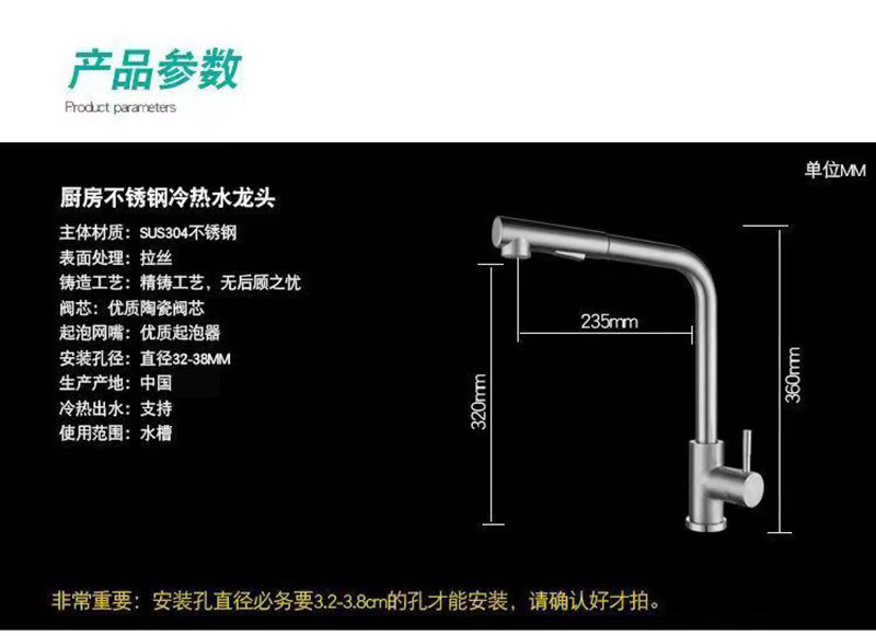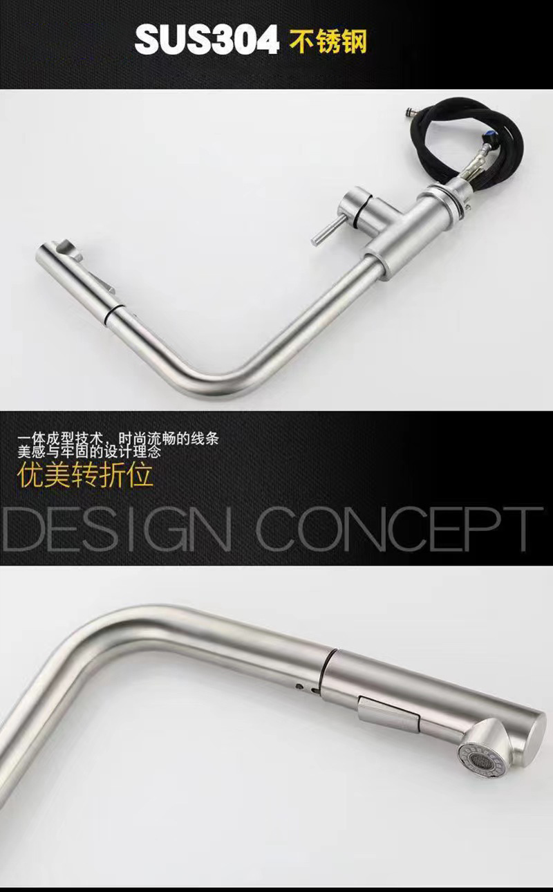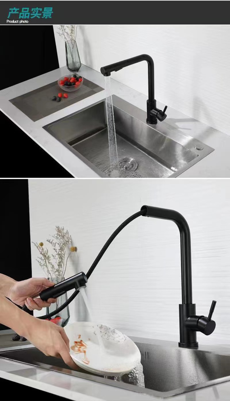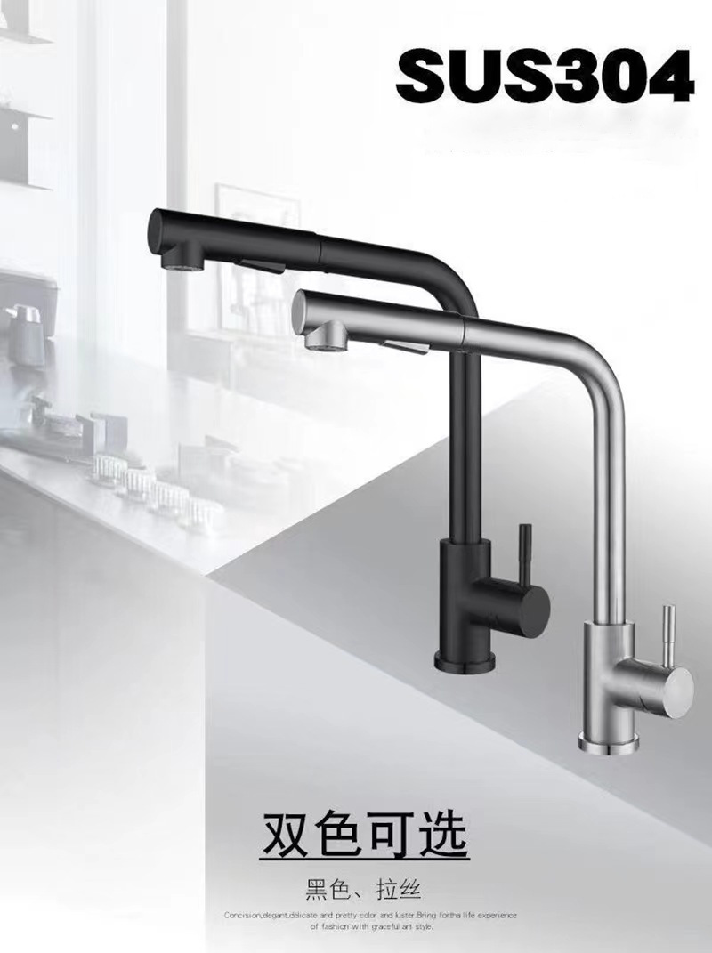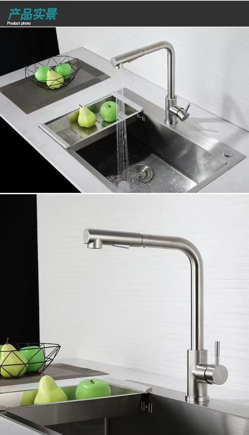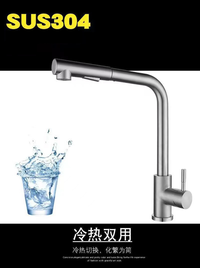 Cross border sink hot and cold kitchen faucet splash proof retractable supercharged household vegetable washing basin stainless steel pull water head