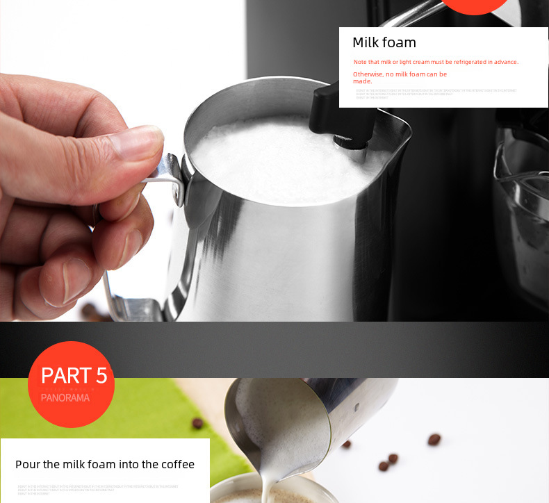 Steam Milk Frothing:This espresso maker features a steam milk frothing function, allowing you to create creamy, frothy milk to enhance the taste of your coffee.