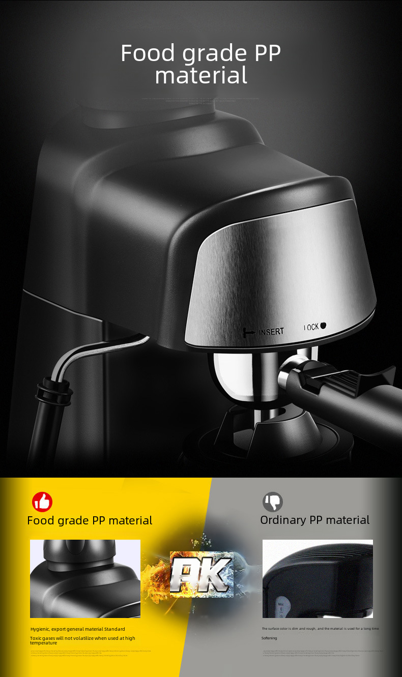 Food-Grade PP Material:Constructed from food-grade PP material, this espresso maker is safe for use in areas where food is prepared, ensuring hygiene and cleanliness.