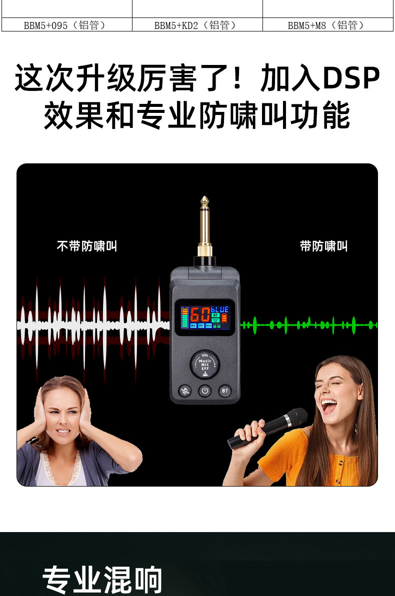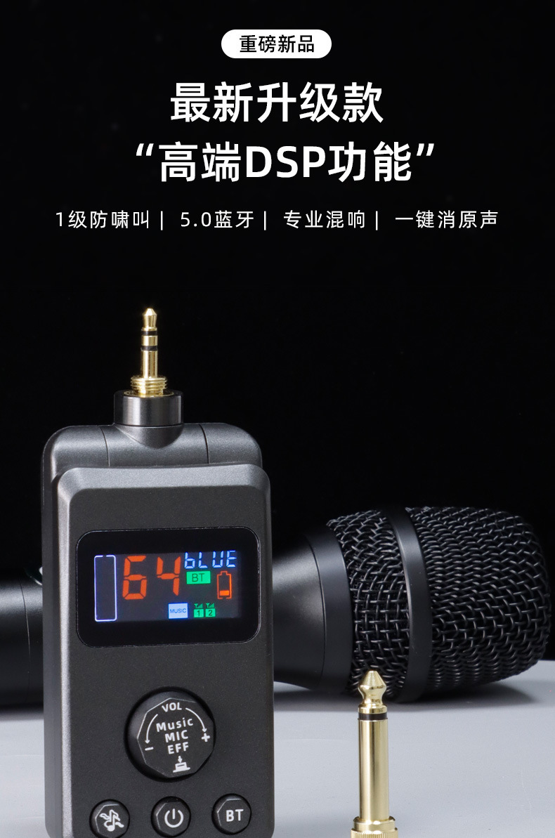 Cross-border universal microphone with reverb Bluetooth wireless microphone DSP anti-howling microphone singing home entertainment ktv