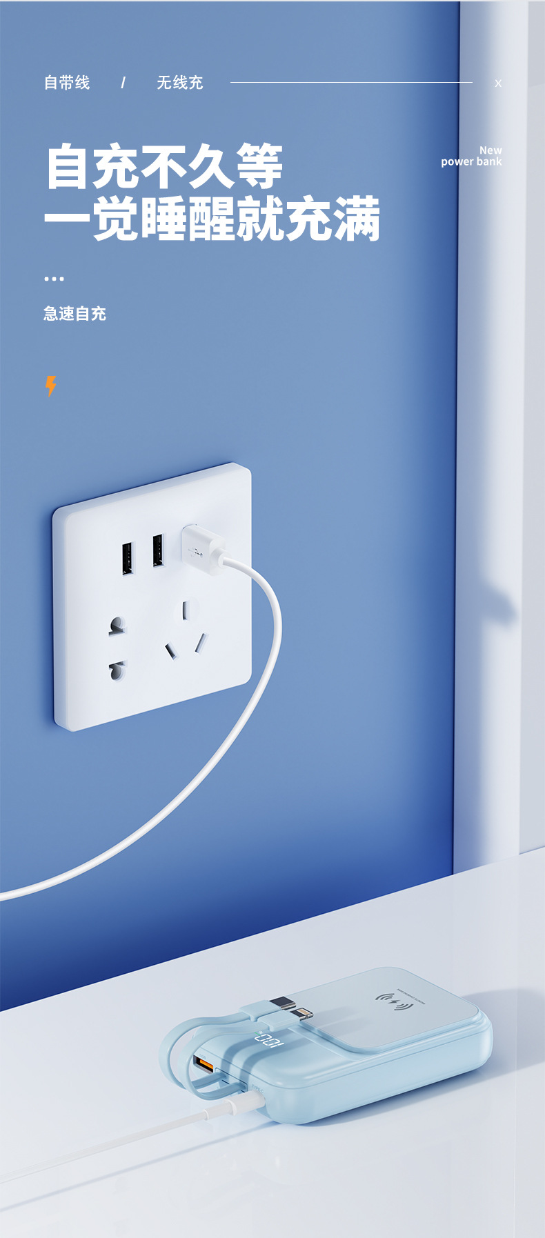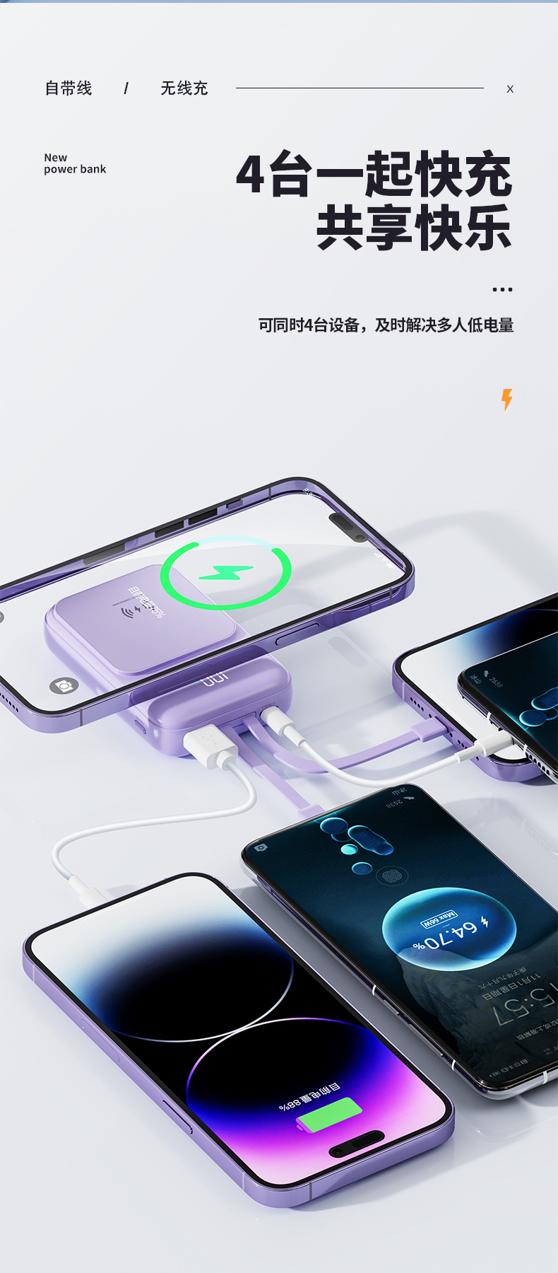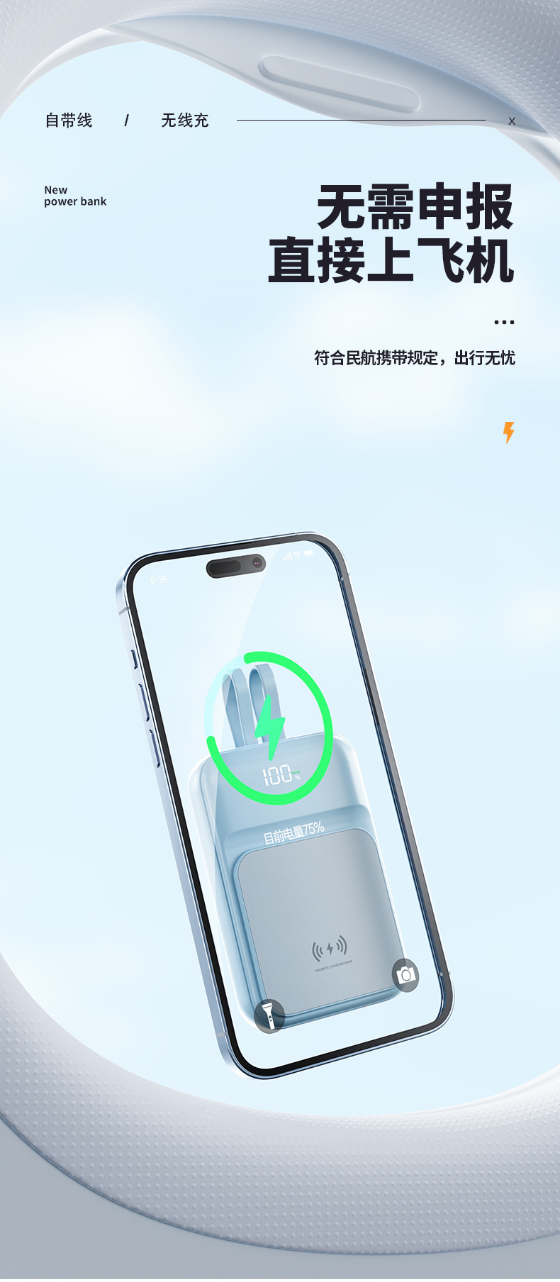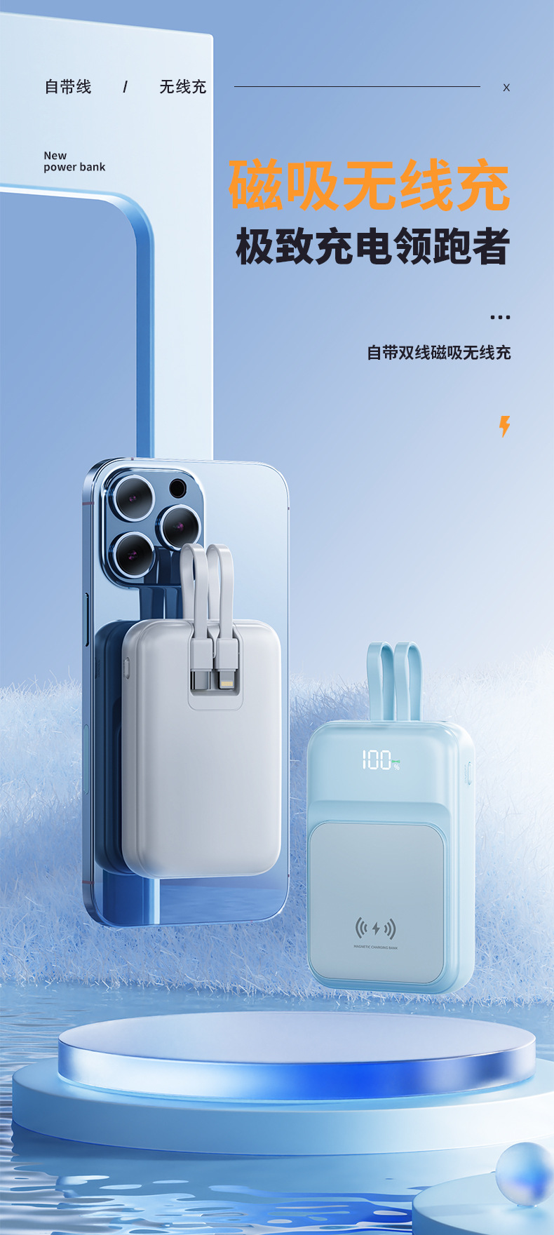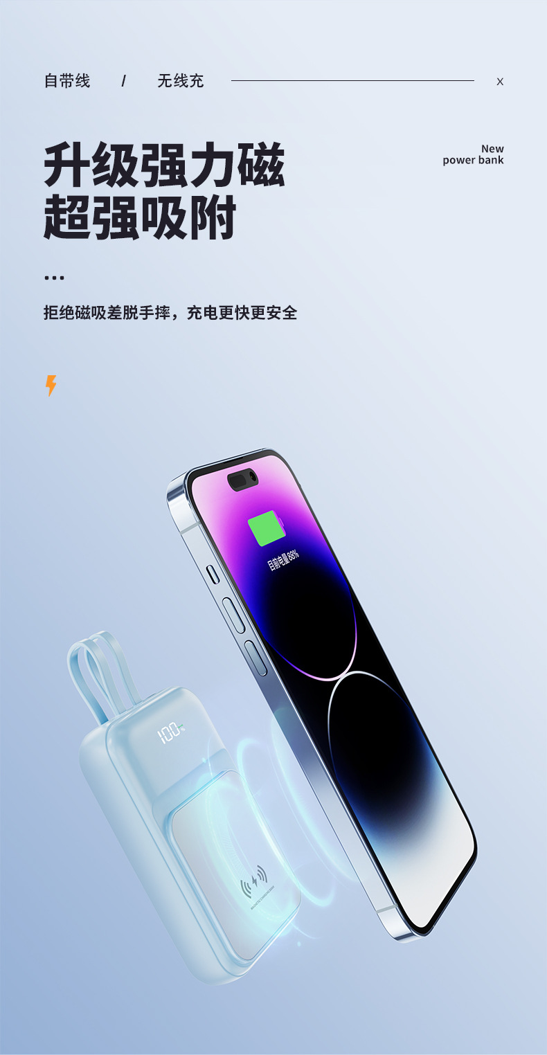 Cross border wholesale wireless charging Magsafe magnetic power bank 10000 mA mini fast charging mobile power printing