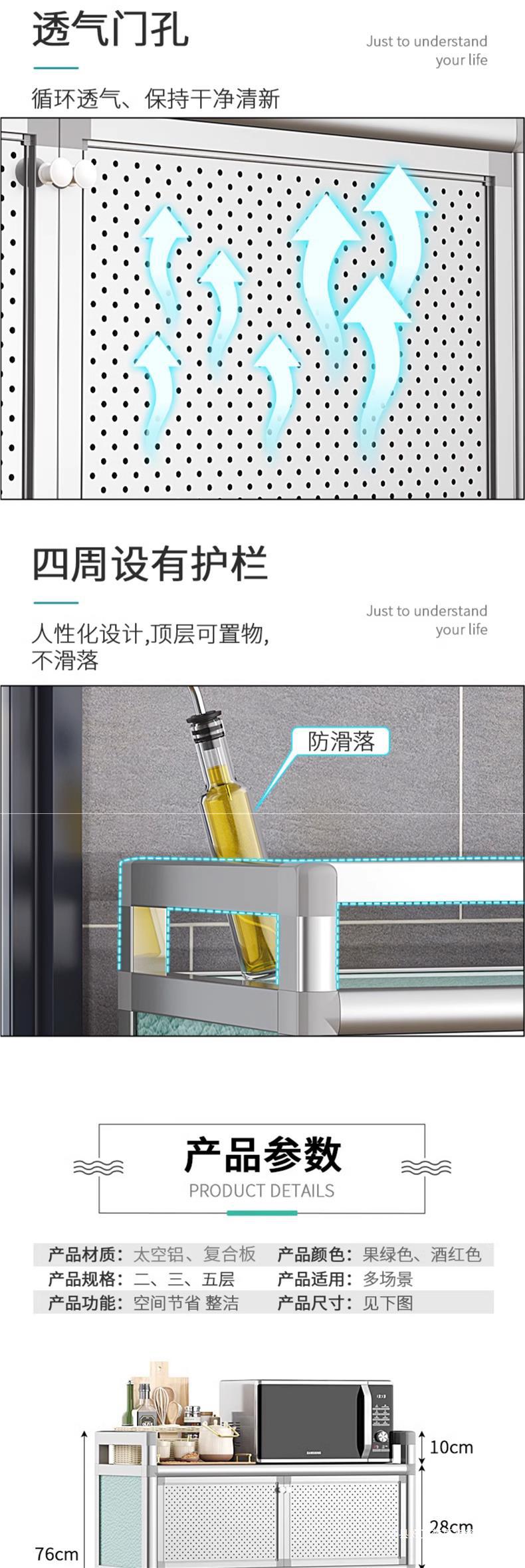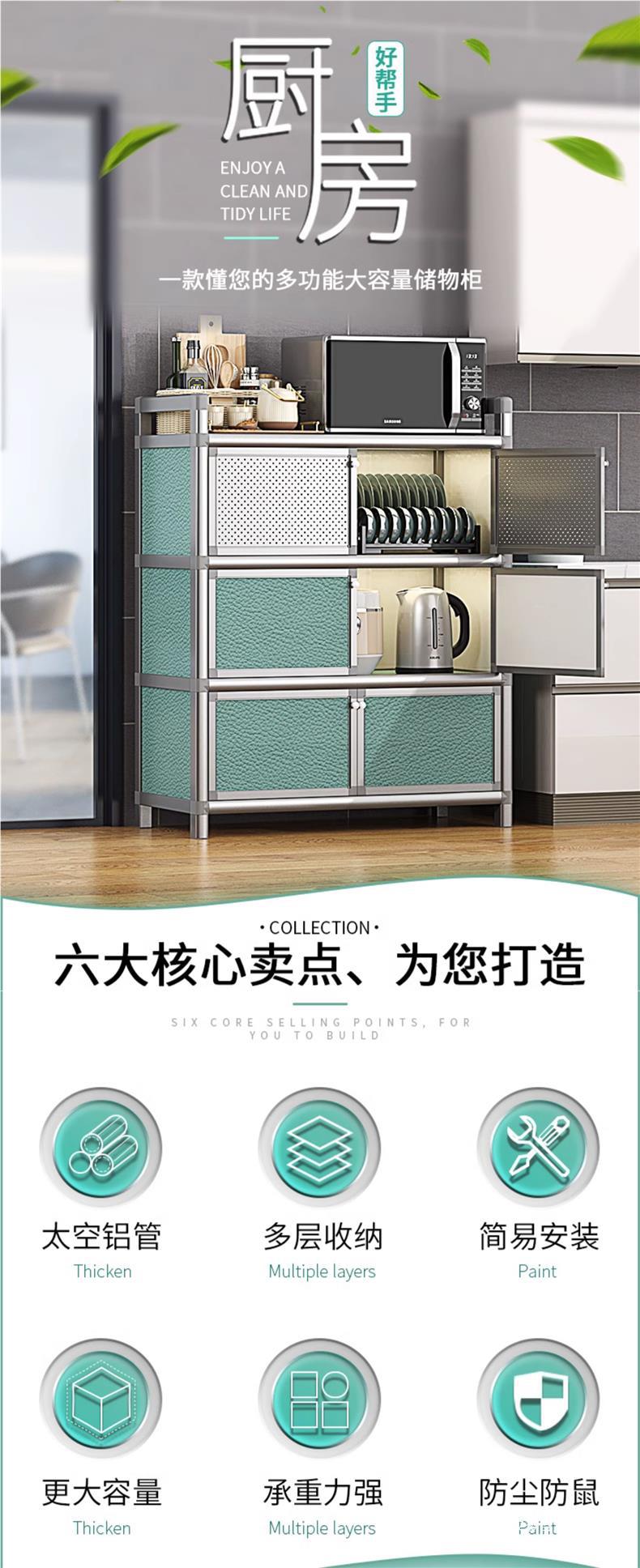Cupboard Household Kitchen Rack Floor-Standing Multi-Layer Storage Rack Microwave Oven Storage Cabinet Small Cabinet with Babbler