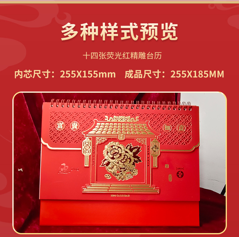 - Fluorescent red color three-dimensional carved-desk calendar