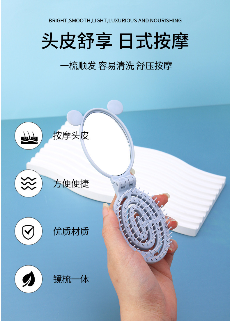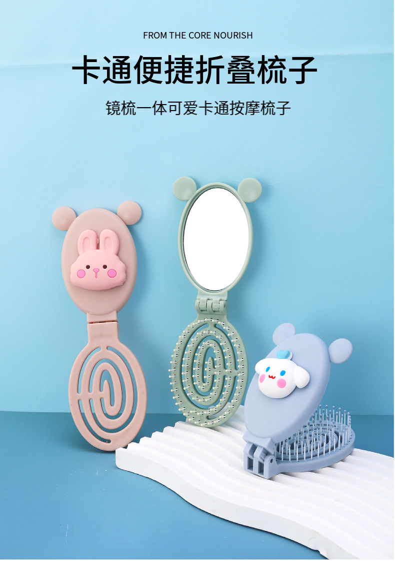 Cute Cartoon Mirror Comb One piece Mosquito Incense Folding Comb Girl Children s Flip Comb Portable Comb Massage Hair Comb