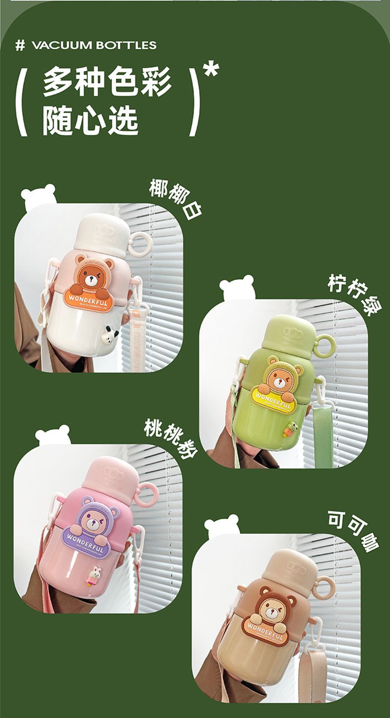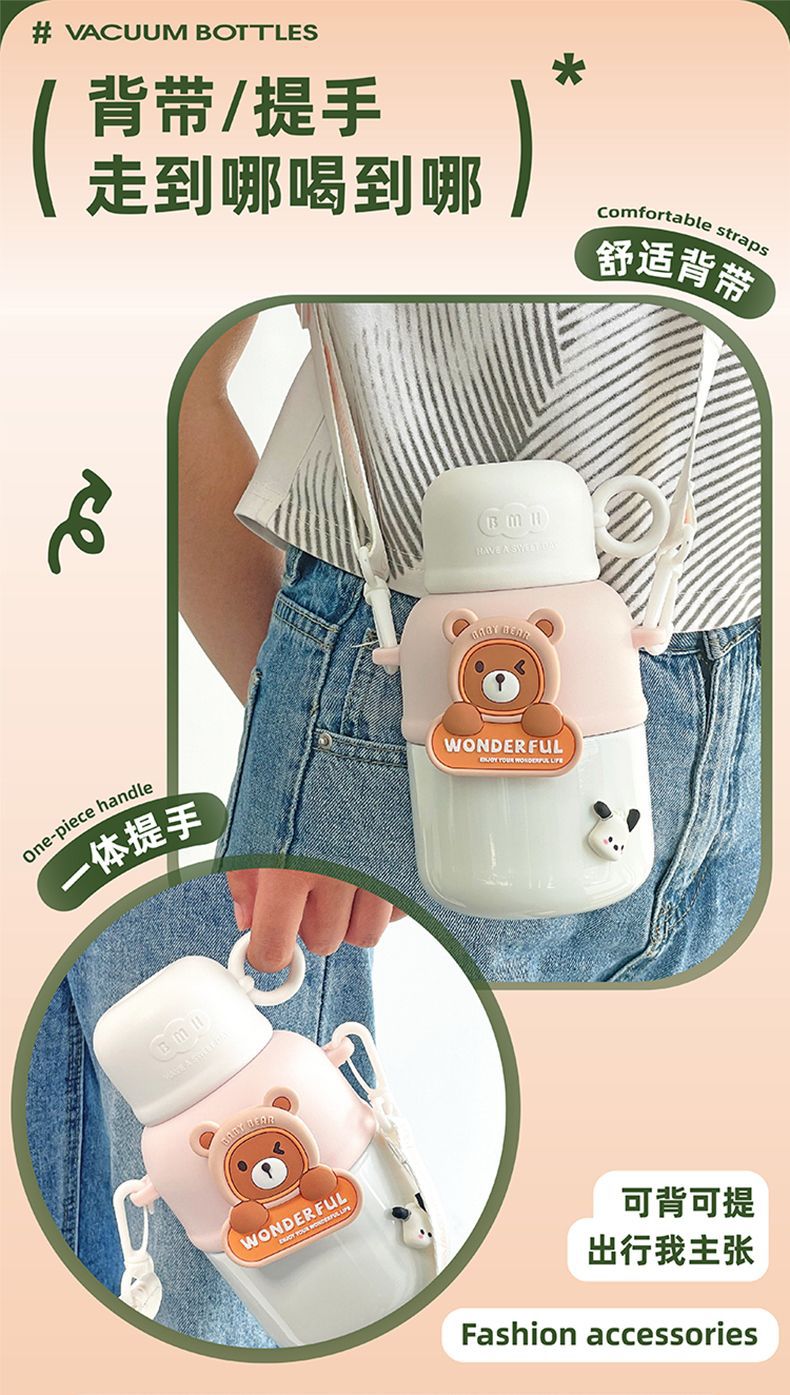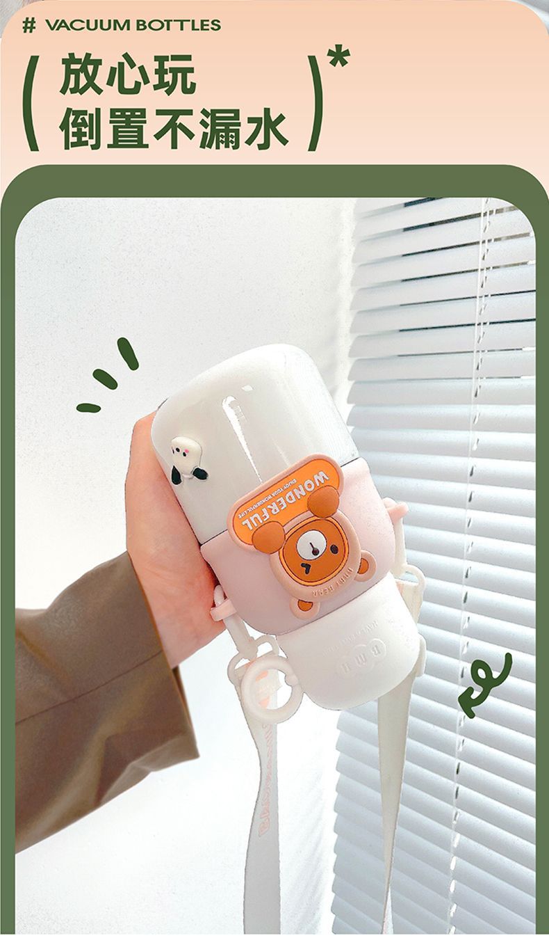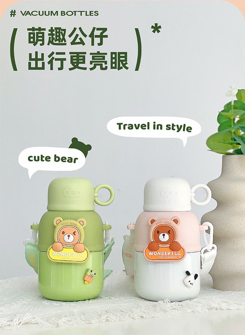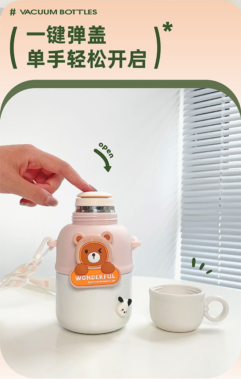 Cute Children's Thermos Large Capacity Portable Kindergarten Kettle One Lid Dual-purpose Crossbody Cartoon Stainless Steel Cup