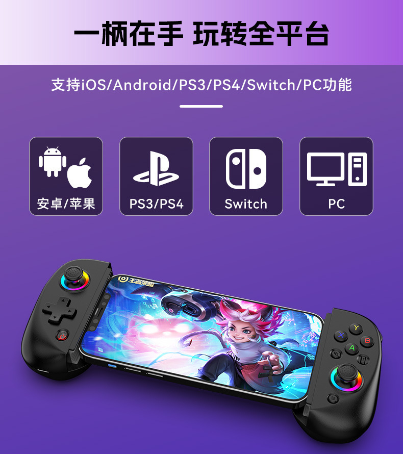 D8 mobile phone tablet stretch Bluetooth wireless gamepad Switch computer ISO Android P4 double Hall handle