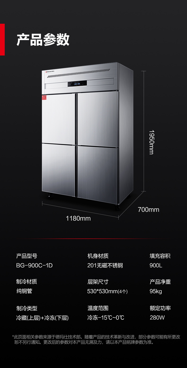 - [-18 ℃]-four-door freezer-BG-900C-2W-refrigerated and frozen