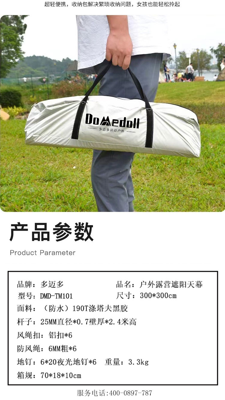 DOMEDO Outdoor Camping Sunshade Canopy Camping Sunshade Portable Picnic Rainproof Sunscreen Canopy