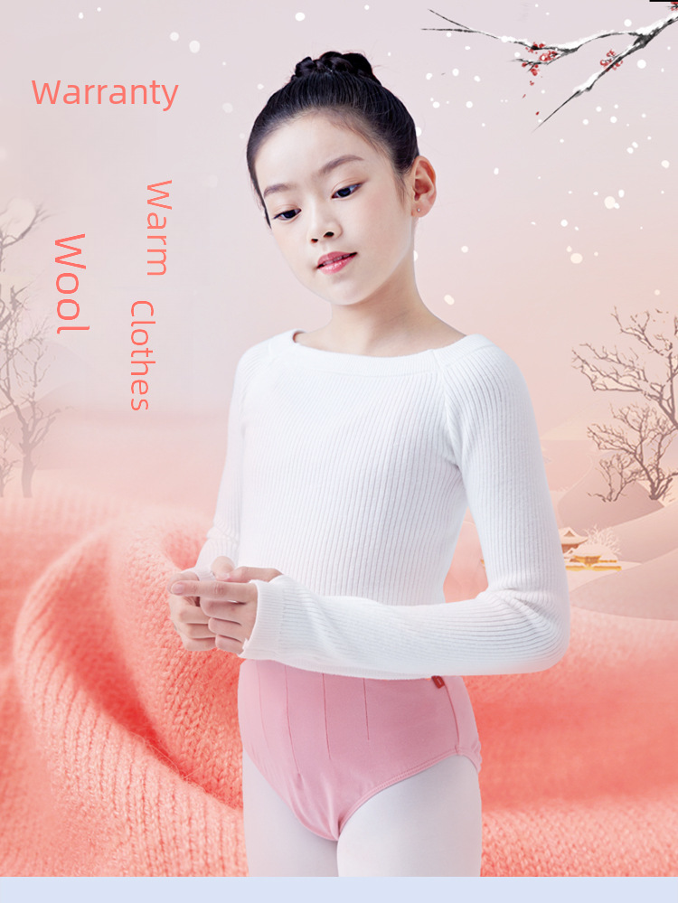 Dance clothes girls long sleeved off neck knitted autumn and winter practice pullover small sweater coat dance clothes outer top