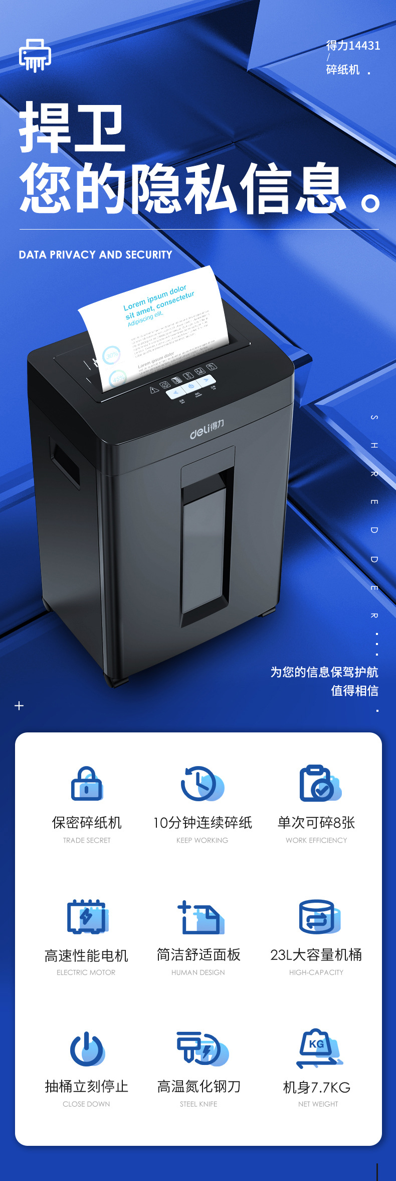Deli 14431 paper shredder office Company small household electric file grinder automatic paper shredder