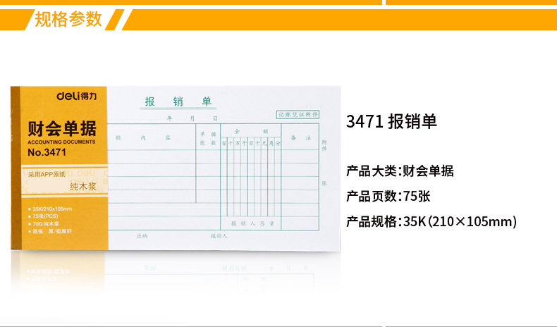 Deli 3471 reimbursement form approval cashier report accounting documents paste form travel expense accounting reimbursement form
