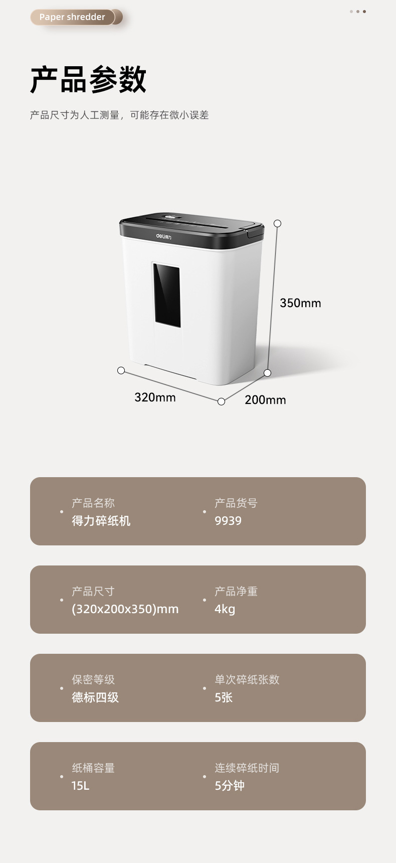 Deli 9939 paper shredder office electric small mini grinder office automatic document confidentiality machine