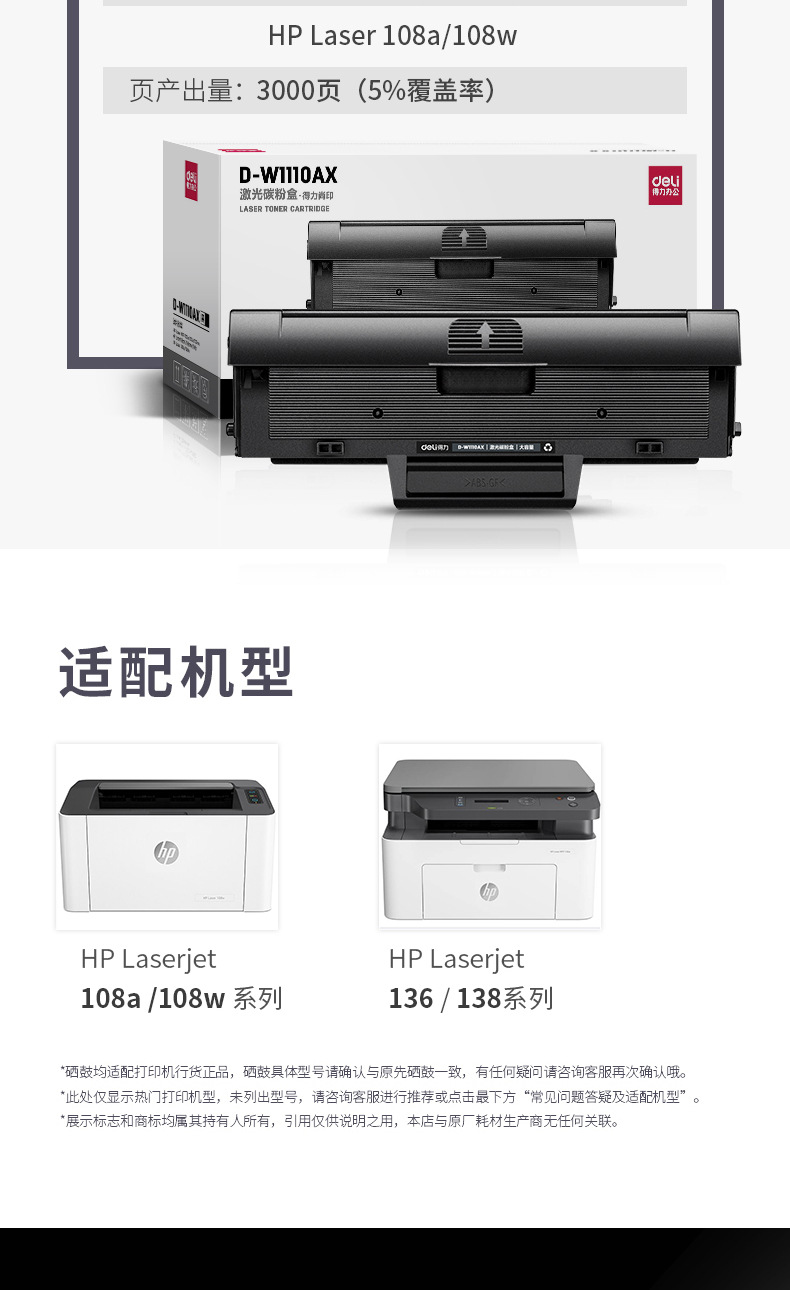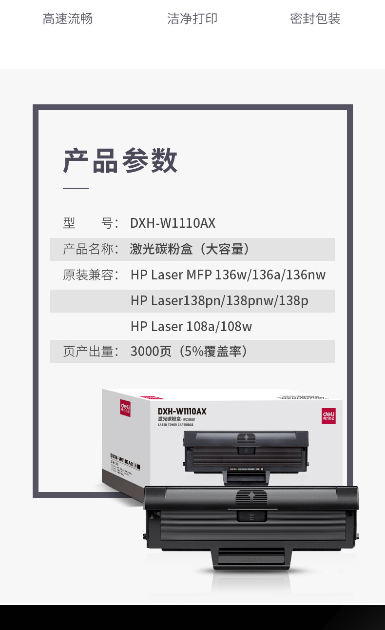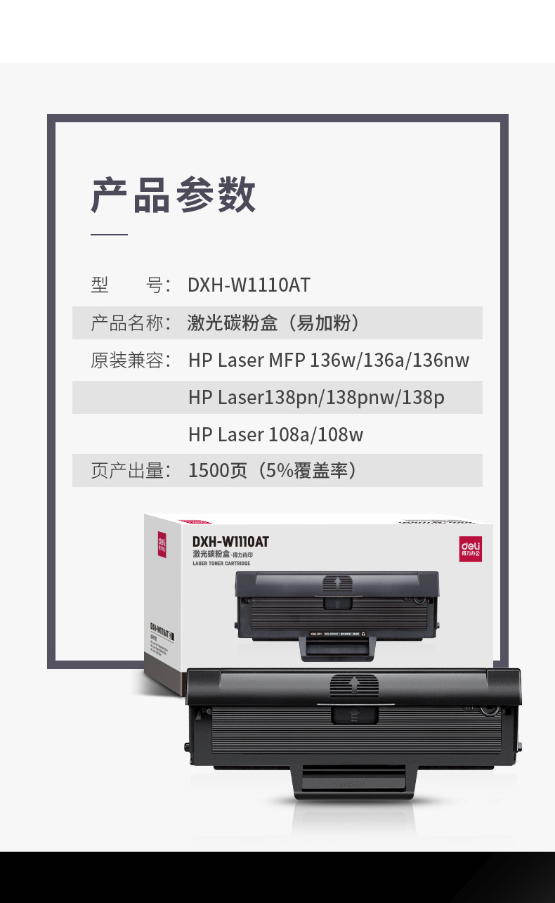 Deli D W1110AT large capacity laser toner cartridge toner cartridge suitable for HP108a 108w 136 138 series