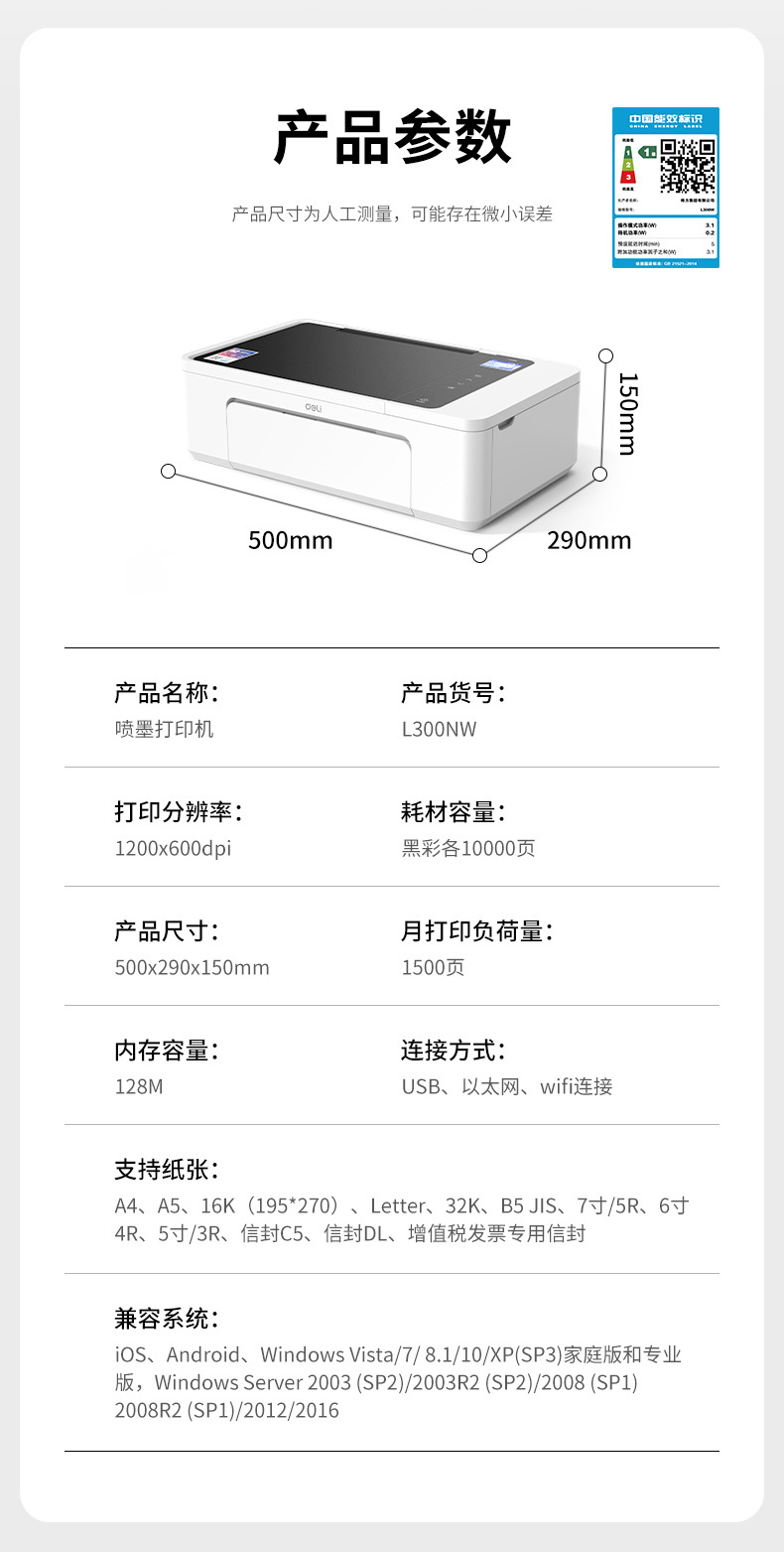 - L300NW color inkjet printer-print copy scan mobile phone print network cable