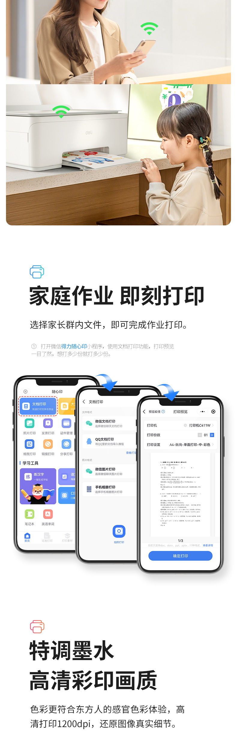 Deli L511W wireless multi function Office Home copy scanning color photo printing inkjet printer