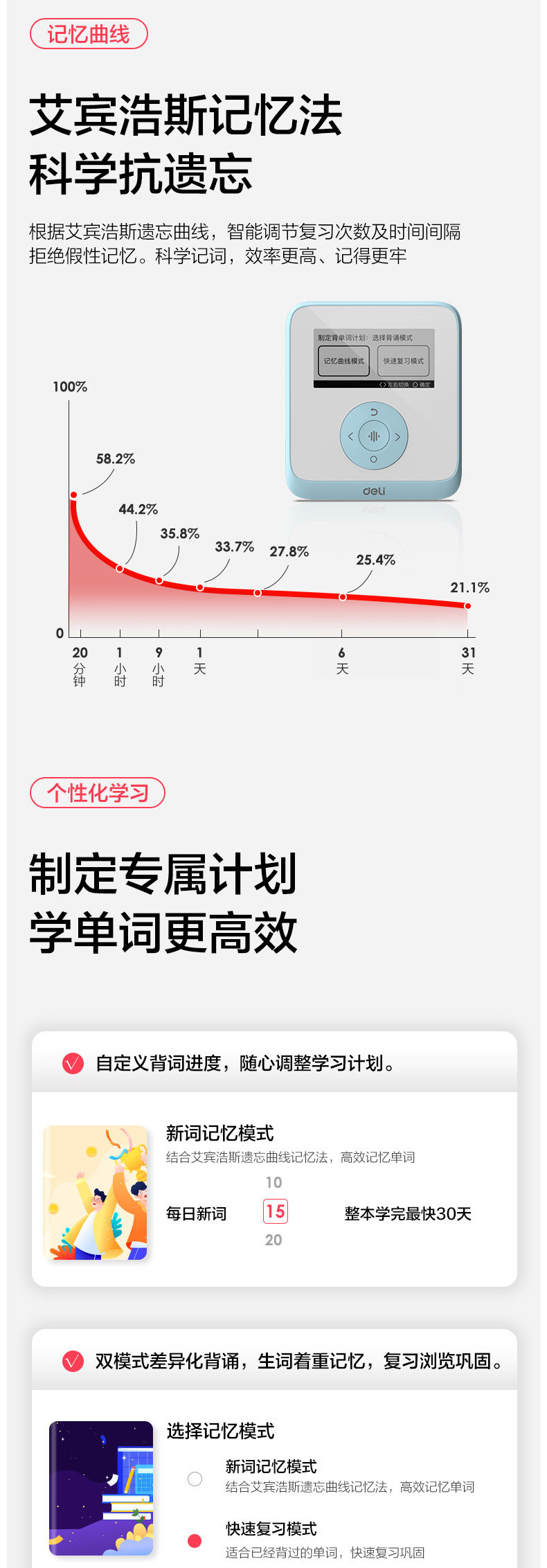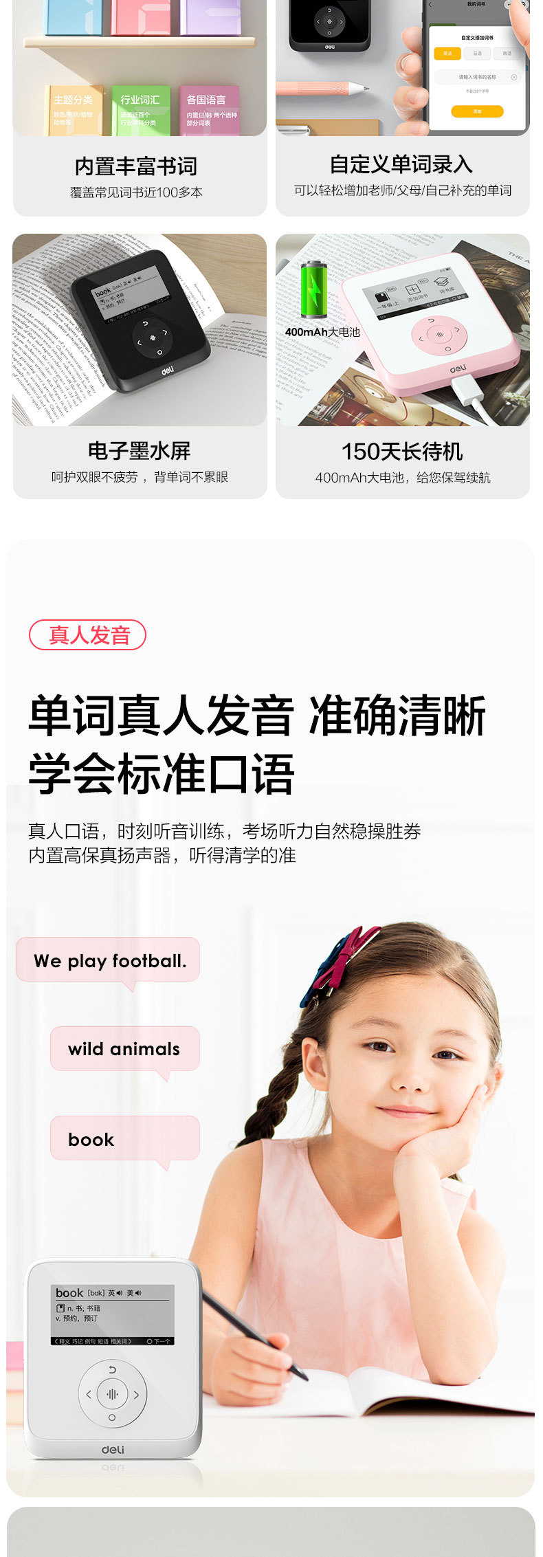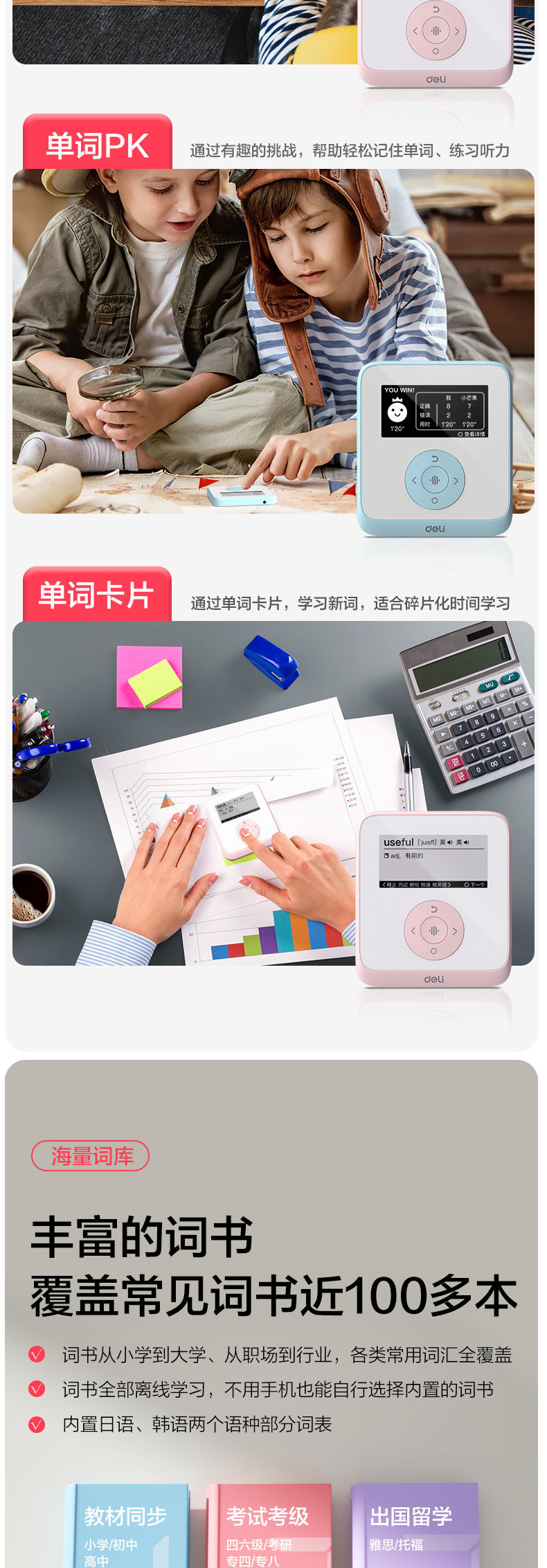 Deli electronic word card back word artifact ink screen Junior High School High School intelligent English portable electronic word machine