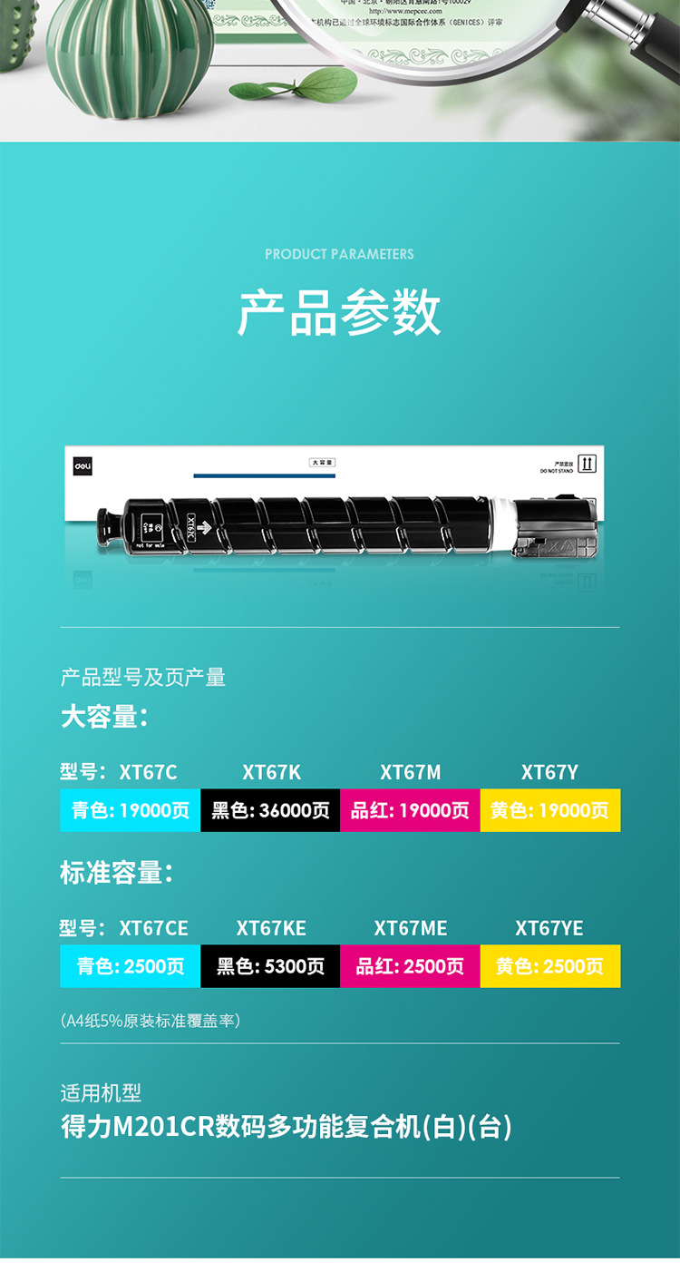 Deli original XT67 standard high capacity original toner cartridge toner cartridge M201CR M301CR
