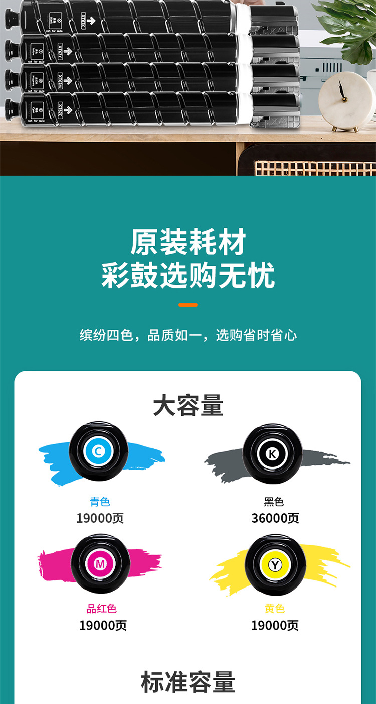 - The cyan large-capacity toner cartridge prints about 19000 sheets