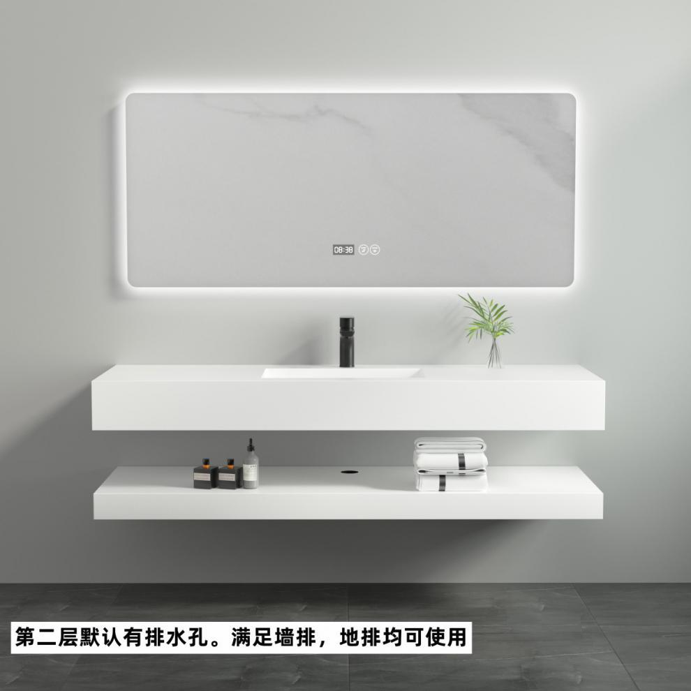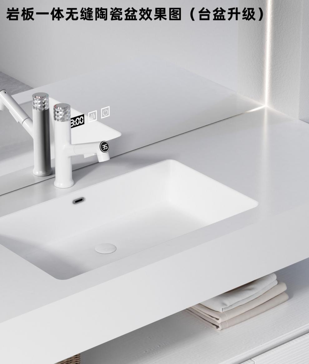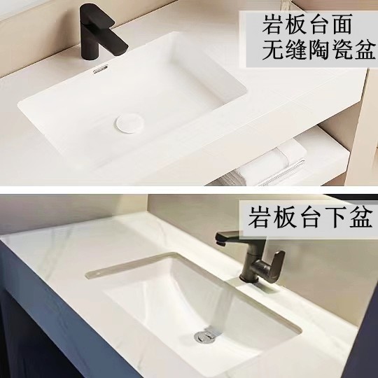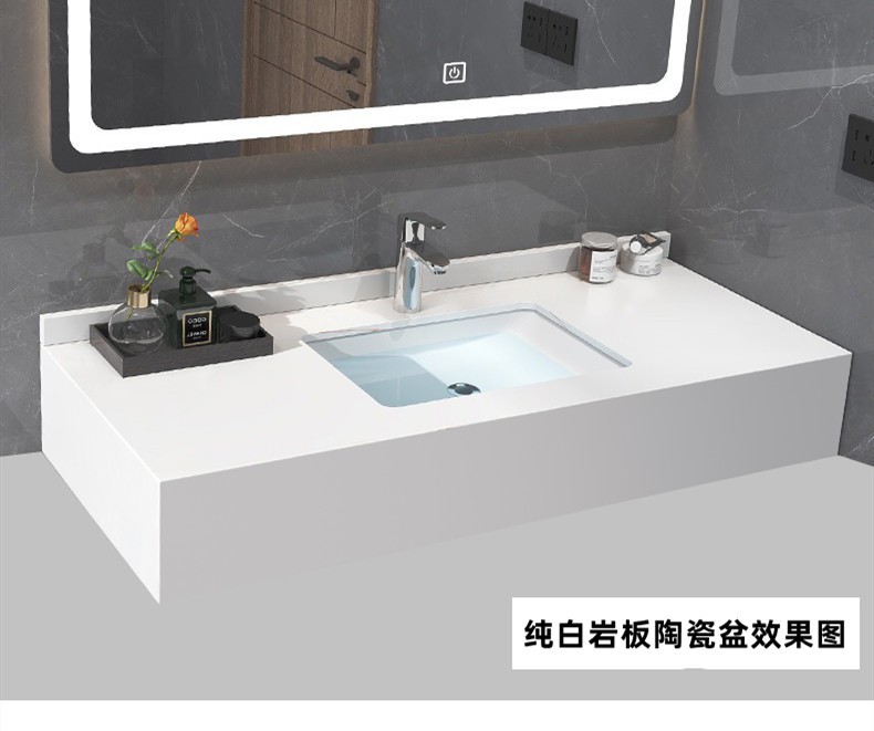 Deq Modern Light Luxury Minimalist Double Layer Rock Plate Ceramic Basin Integrated Bathroom Cabinet Balcony Hotel Homestay Washbasin Present