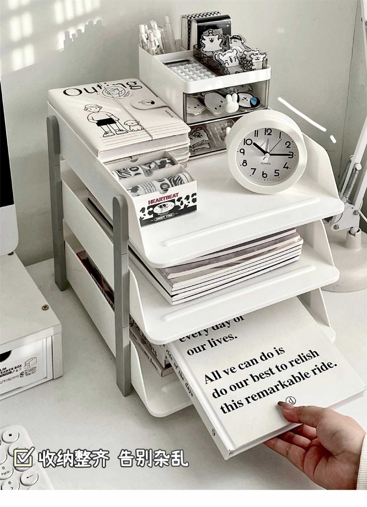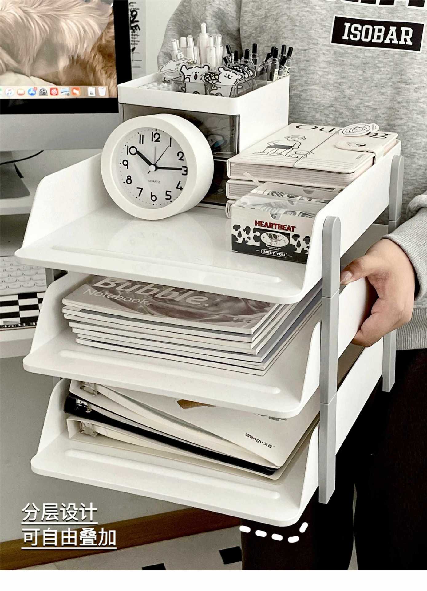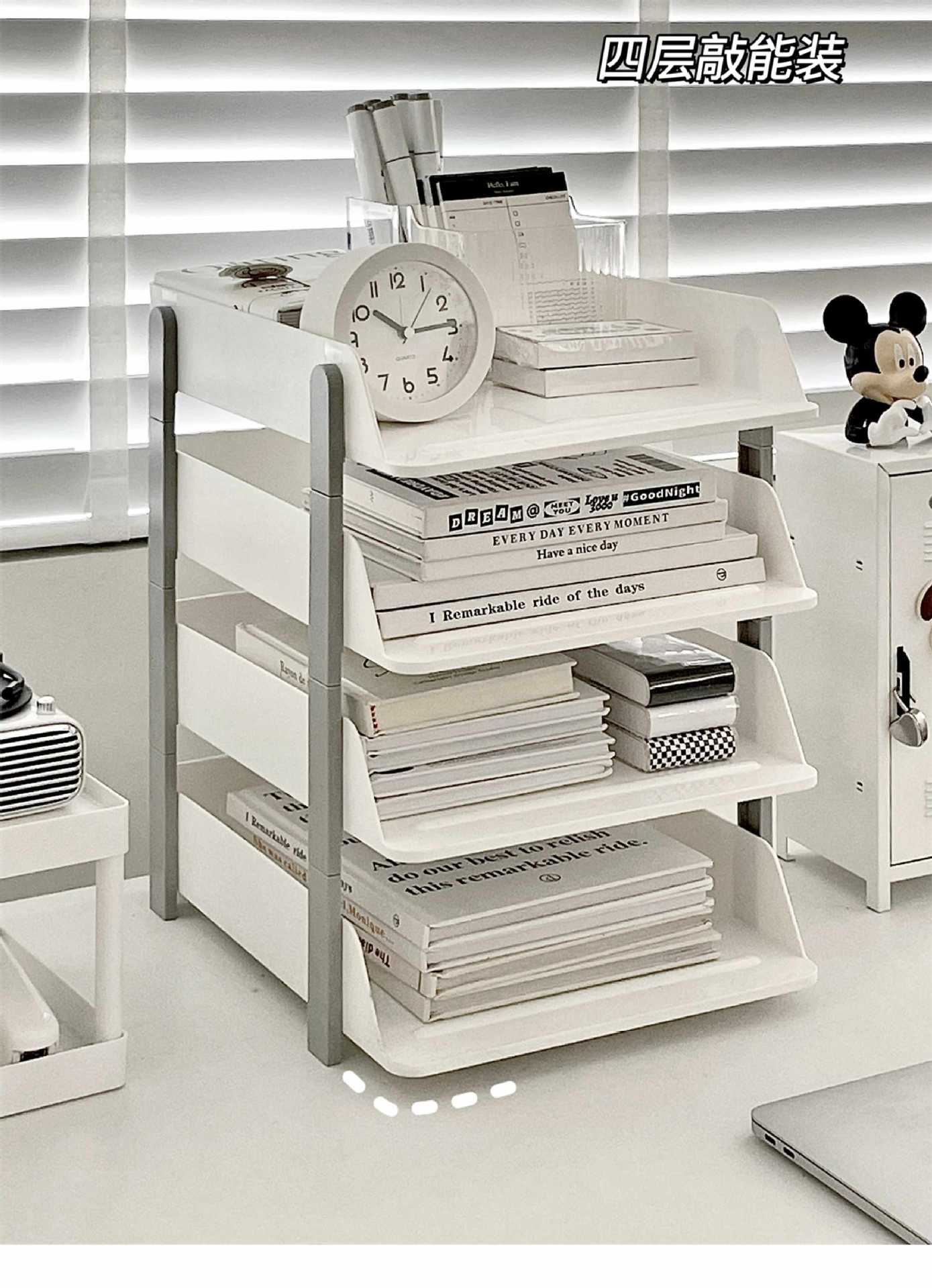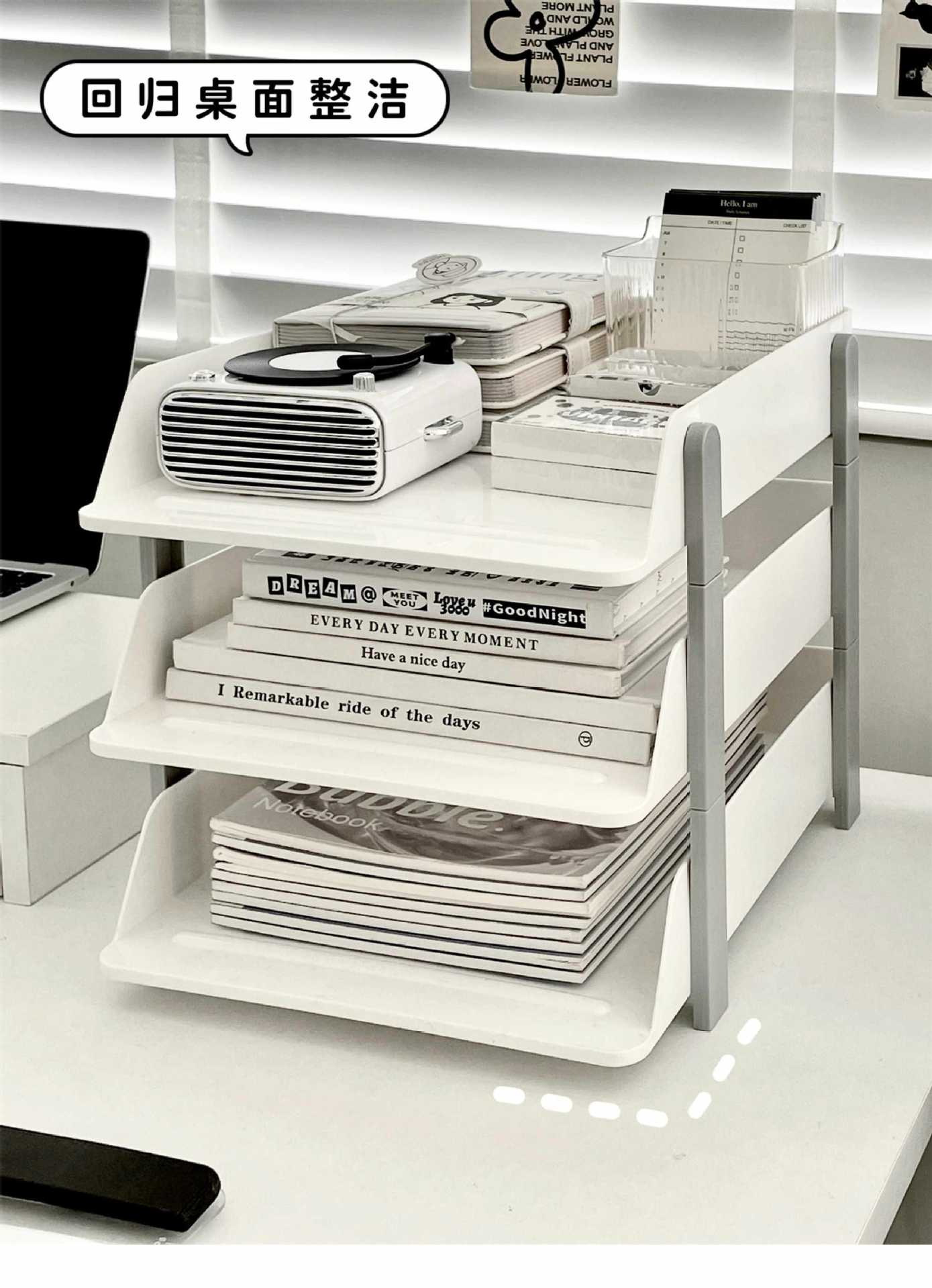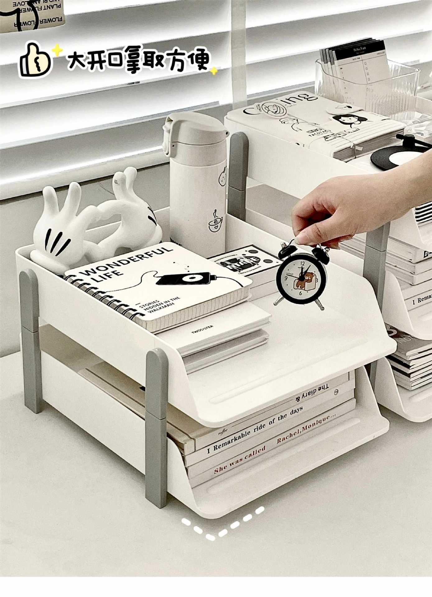 Desk Book Stand Desktop Bookshelf Layered Storage Rack Office Organize Student Desk File Folder Storage